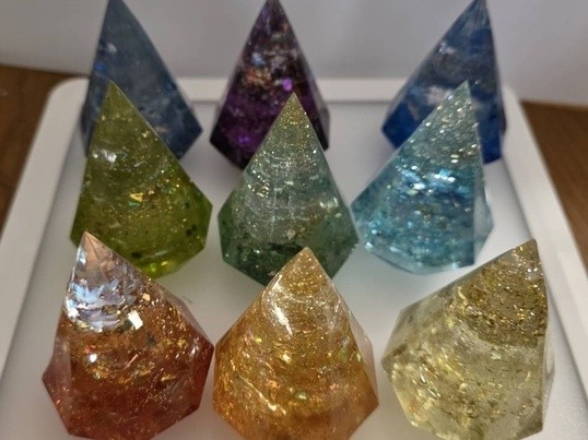 緑色のオルゴナイトを胸の位置に置いてヒーリングを行い、
