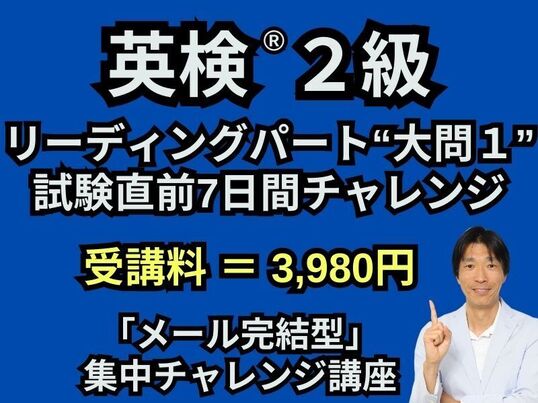 英検®︎2級リーディング・最重要パート大問1語彙問題に絞り、試験直前7日間で得点力を底上げするメール完結型チャレンジ講座