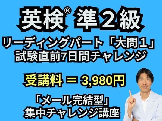 1. 英検®︎準2級・リーディングパート大問1形式の問題(1セット15問)を7日間【メール】で配信