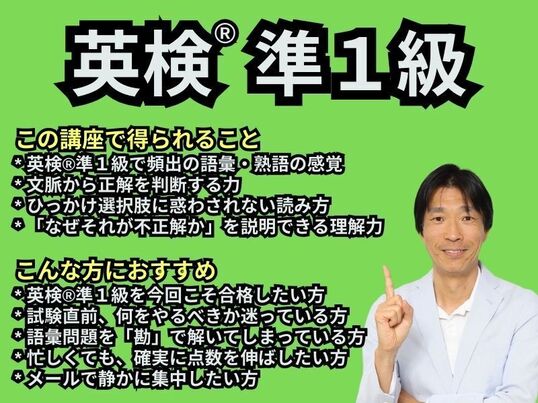 英検®︎準1級合格に直結する「18問」を一緒に固めていきましょう。