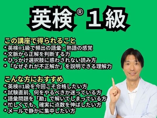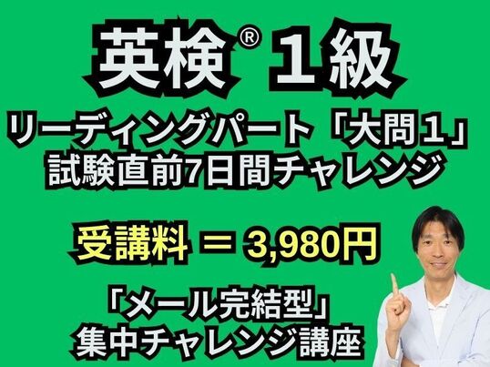 英検®︎1級リーディング・最重要パート大問1語彙問題に絞り、試験直前7日間で得点力を底上げするメール完結型チャレンジ講座