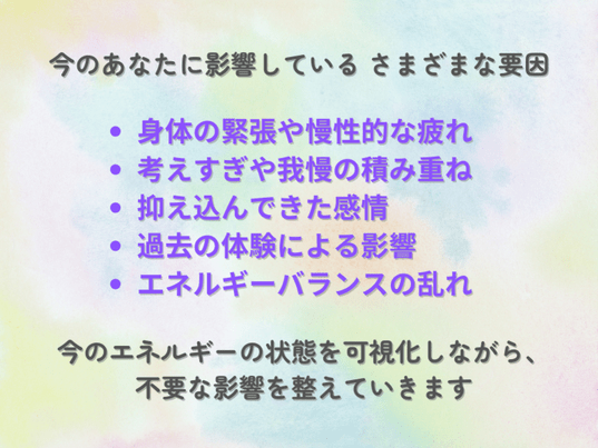 自分では気づけなかったエネルギー状態を可視化! 心・身体・エネルギーをバランスよく整えることで、自然と流れが整い始めるカスタマイズセラピー