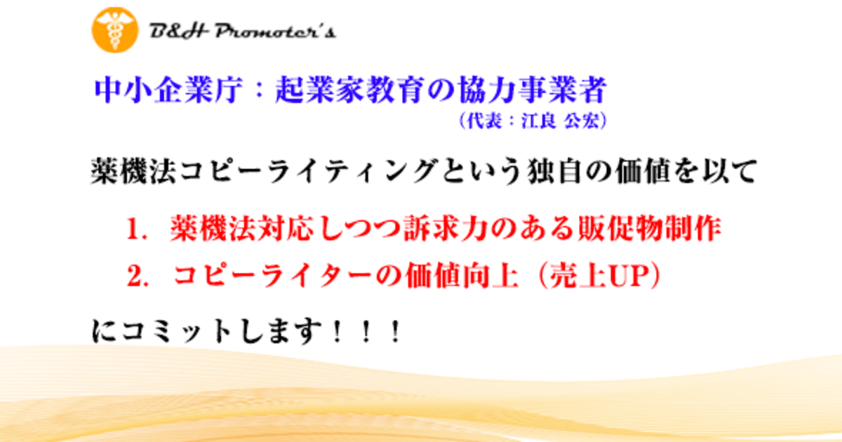 代表の江良は『日本化粧品検定協会』『宣伝会議』といった場所での薬機法講師をはじめ、中小~上場会社の社内研修も務めています。講師だけでなく、今でも大手広告代理店をはじめとした広告代理店・メーカーの薬機法・景品表示法に関する悩みをサポート。