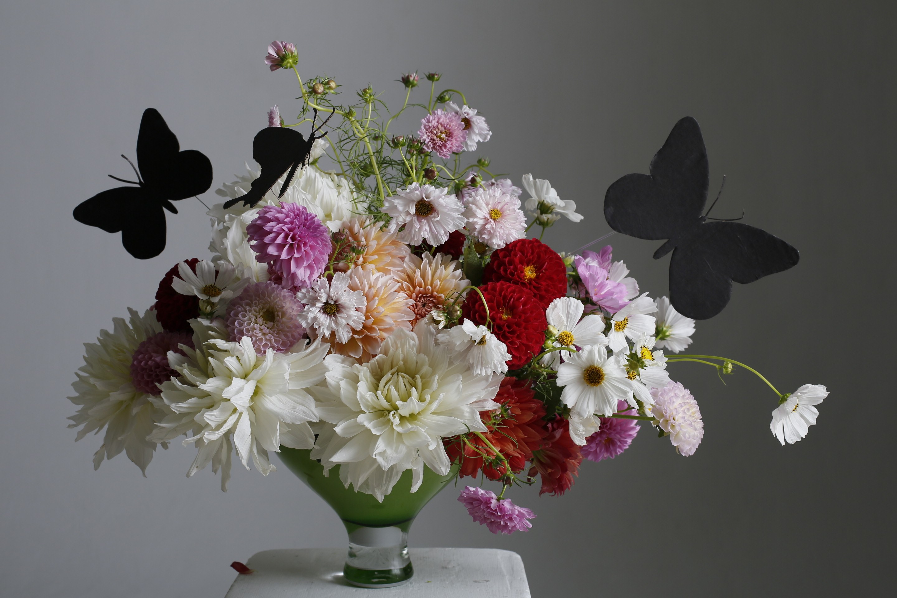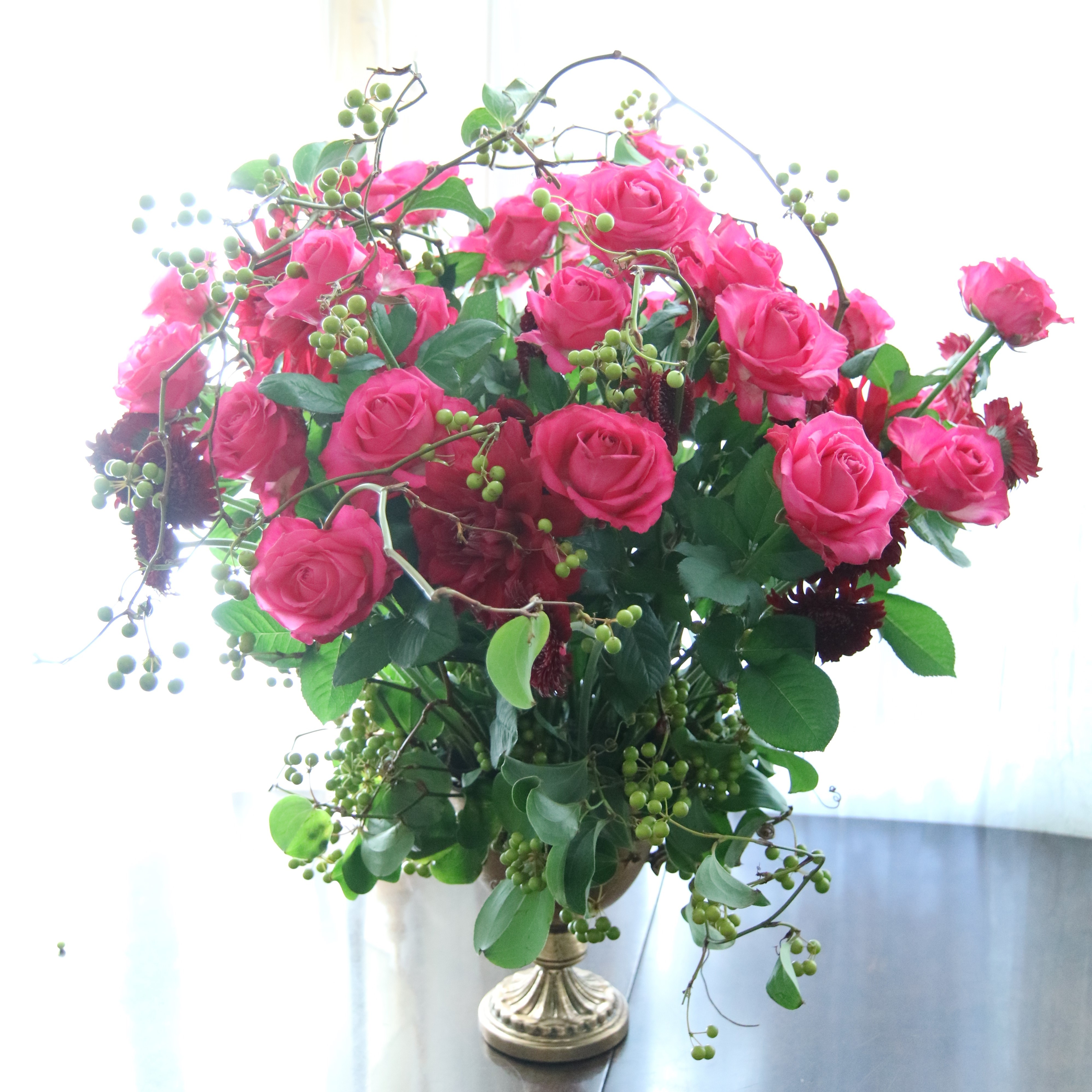 花を活用した上質な空間づくりも得意とし、カナダ大使館をはじめとした法人向けの装花と共に、著名人やセレブ層の自宅の装花も手がけています。