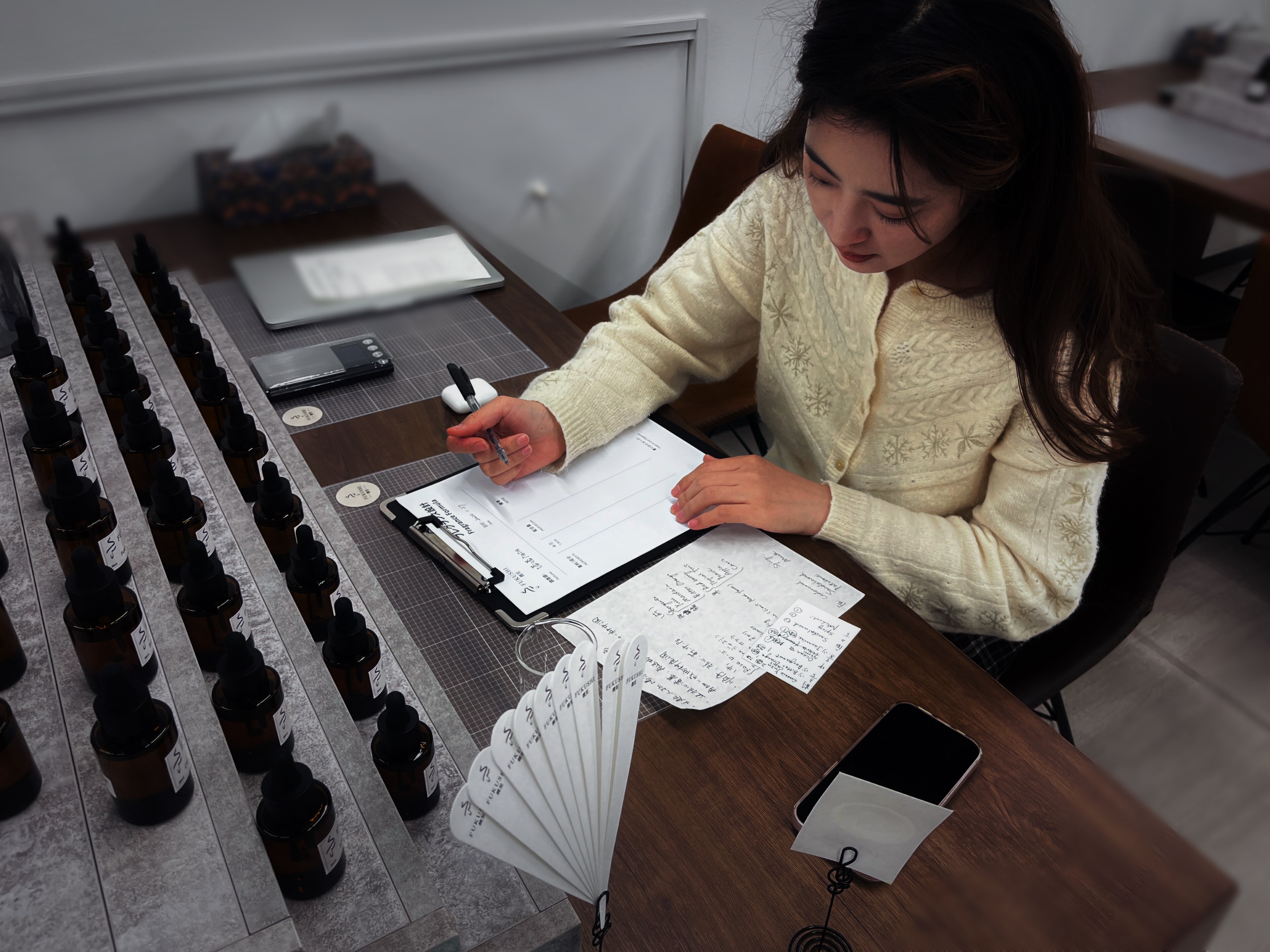 レシピ設計と調合:お好みに合わせて、独自の香水レシピを調合します。