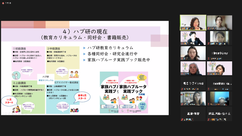 活動内容:「日本初」ハブルータ教育研究組織として、2022年2月22日創設/初級~上級講座開設中/ハブルータ絵本プロジェクト(YouTube動画)/オンライン・オフライン同好会活動中