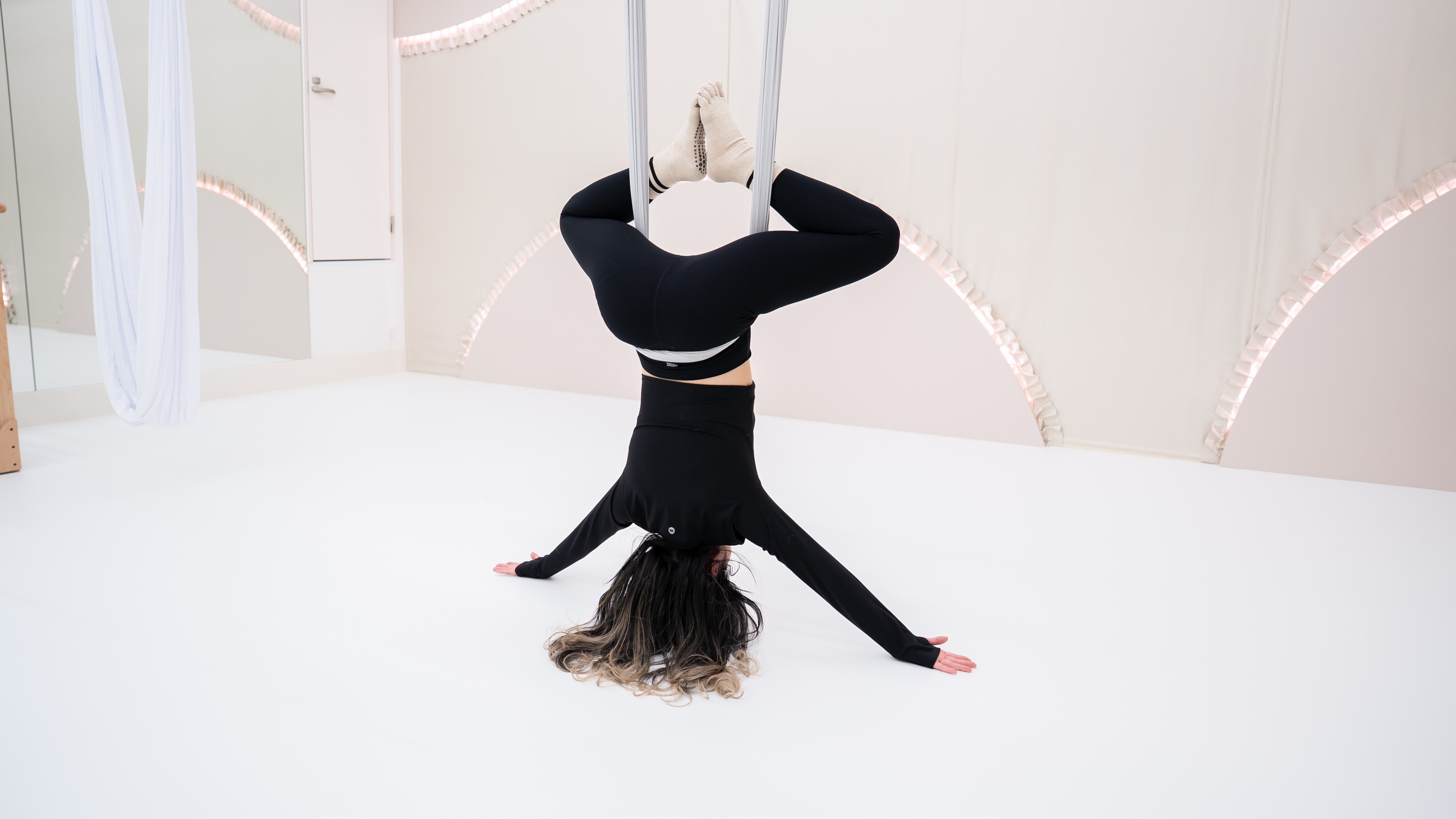 初めてのエアリアルヨガとのことでしたが、ご自身のペースでしっかり動かれていてとても素晴らしかったです。