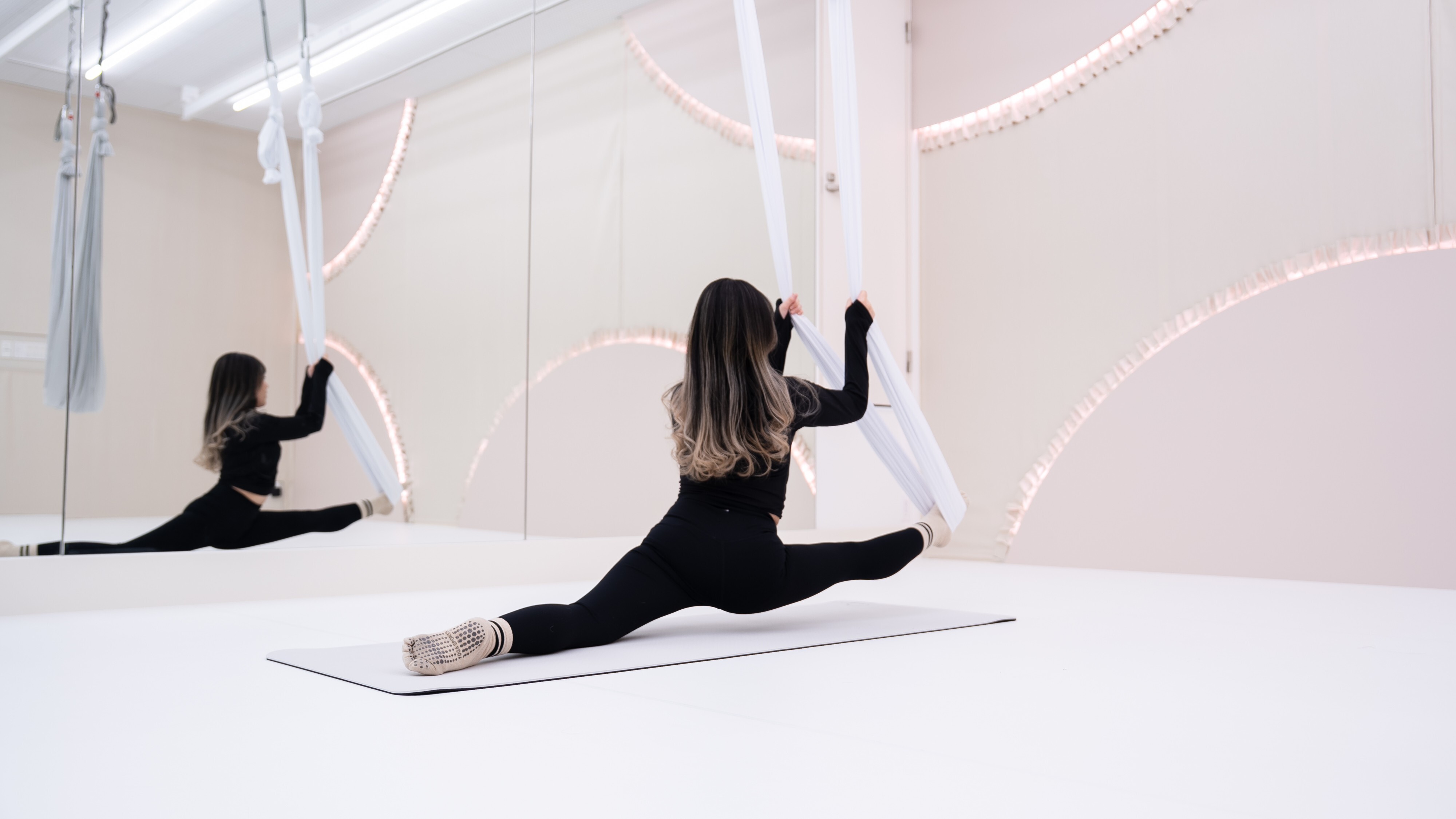 当スタジオでは、重力から解放される“エアリアルヨガ”と、身体の土台を整える“ピラティス”を組み合わせ、美しい姿勢・体幹の安定・柔軟性・リフレッシュ・産後ケアなど、幅広い目的に対応したレッスンを行っています。