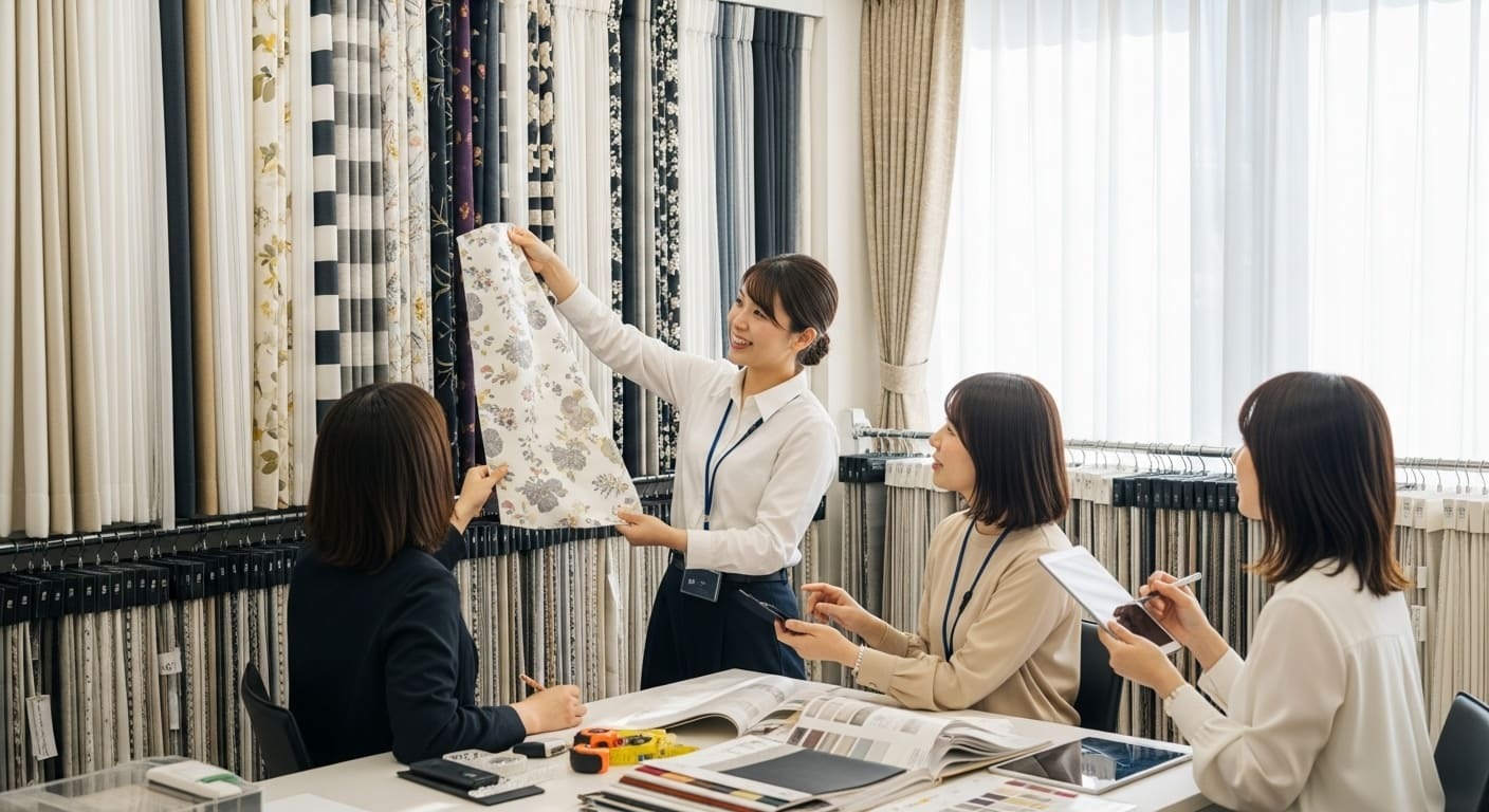 カーテン生地×五行×色の相性をふまえた空間コーディネート、実店舗・訪問販売・オンライン提案すべてに対応可