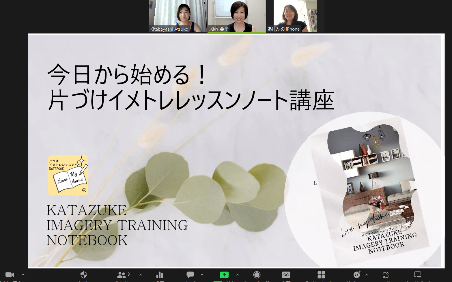 イメトレ講師のオンライン解説をリアルタイムで聞きながら、受講生はイメトレノートに書き込んでいく方式です。