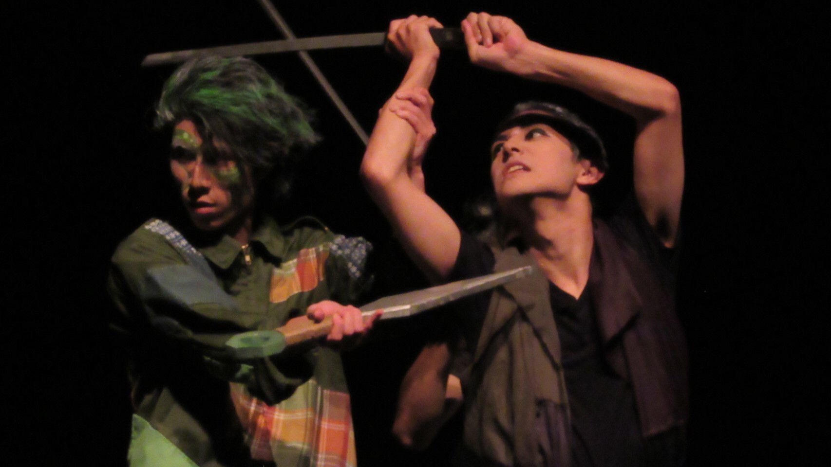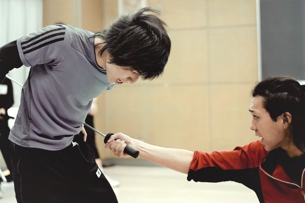 〈殺陣〉とは、俳優が格闘シーンで武器などを用いて行う演技のことです。