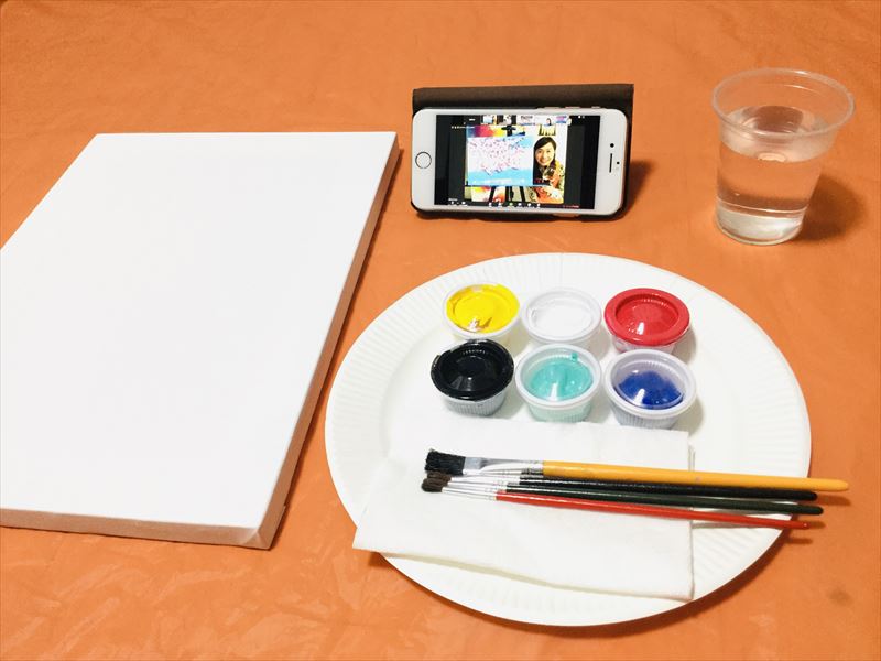 ペイントパーティーはもともとお酒を飲みながら絵を描く、というコンセプトで、ゆったり進めていきますので、オンラインでも飲食しながら楽しむことができます。