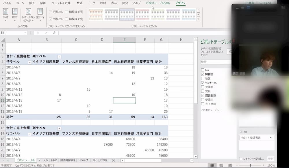 課題以外の私の仕事のエクセルも教えていただき、本当に助かりました!