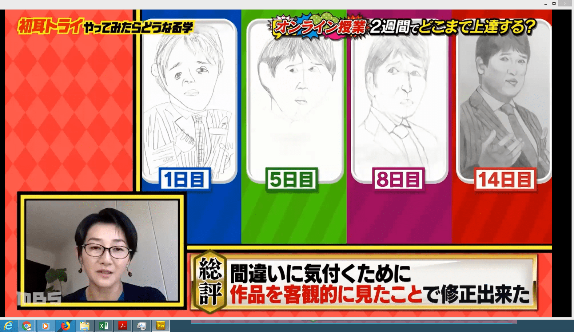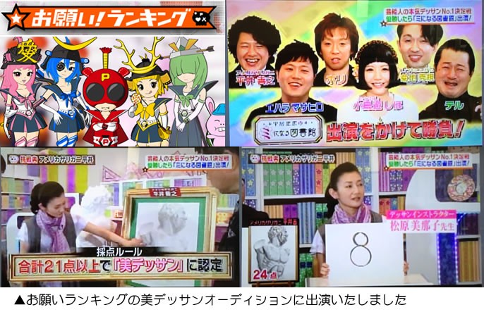 「TBS 林先生の初耳学」「TBS 中居正広のミになる図書館」「テレビ朝日 両極端ウォッチング」に美デッサン講師として出演。