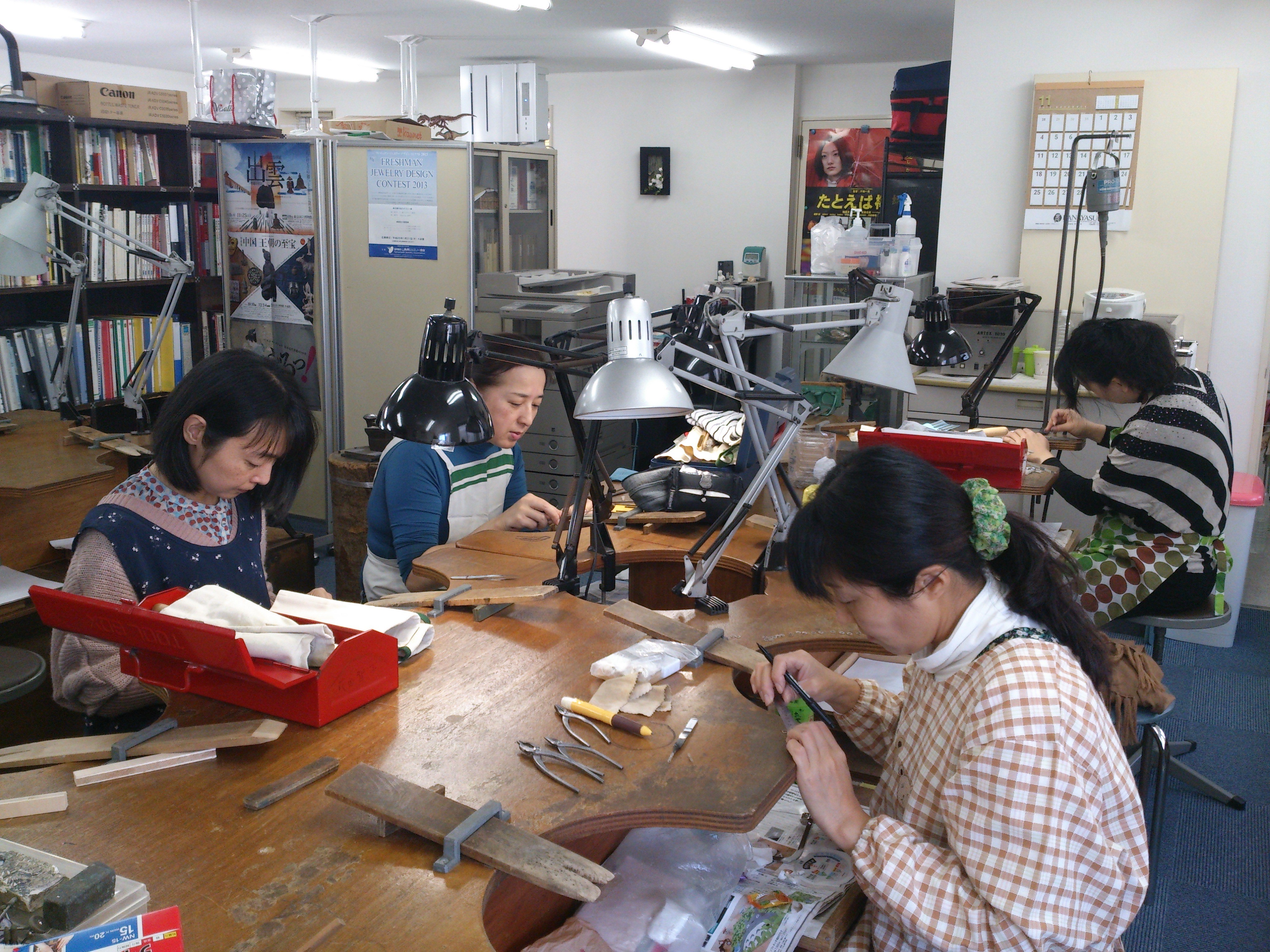 教室では彫金、ロストワックス、宝石研磨を教えています。
