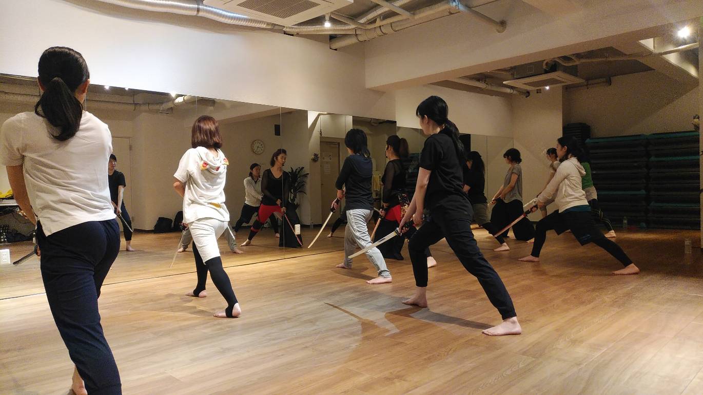 刀を使ってさまざまなポーズを取っていきますが、初心者には難しい型もあります。そこも先生が丁寧にアドバイスをくれて学びになりました。それはさておき、本格的に運動できるのが嬉しい!こんな機会はなかなか作れないのでありがたいです。