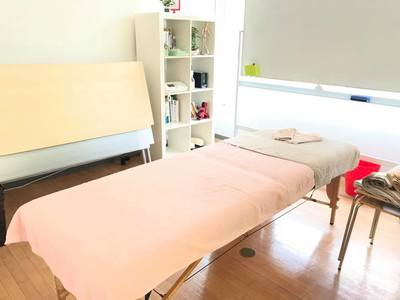 施術用ベッド、PC用のモニター、プロジェクタ、ホワイトボードも無料貸出