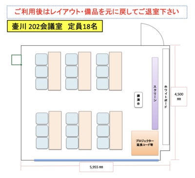 ・退室時には、清掃とゴミ処分、元のレイアウトへ原状回復をお願いします 。