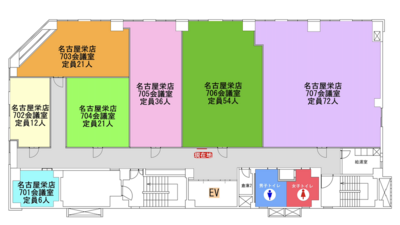 みんなの貸会議室『名古屋栄店』は6名〜72名まで選べるお部屋が7部屋ございます。