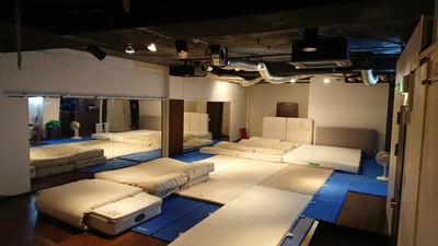 面積約90㎡、ジョイントマット、体操マットが敷いてあります。ダンス時はマット類は片づけて床はフローリングになります。特にブレイクダンサー、ハウスダンサーに好評の床となっております。