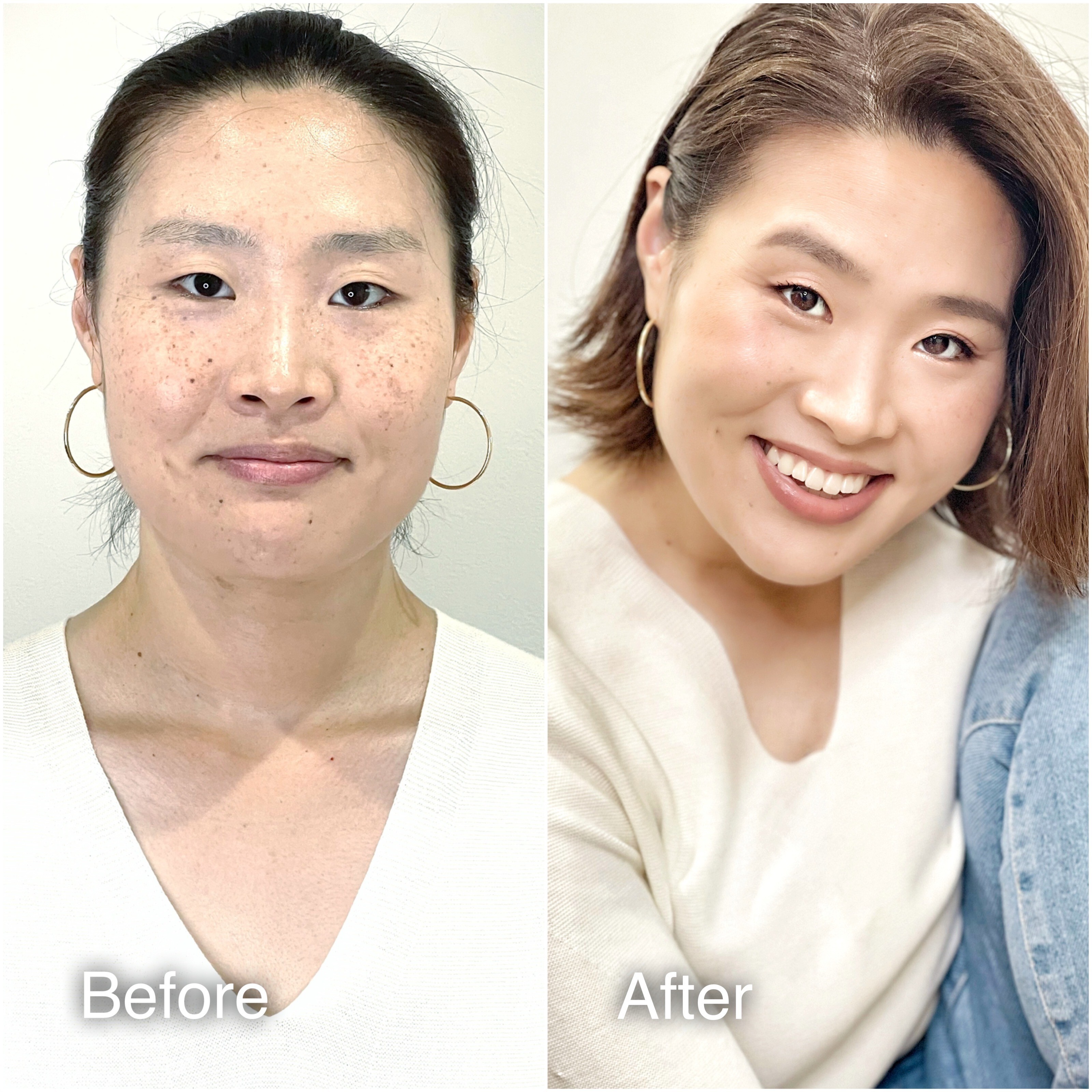 長年メイク迷子で、自分の顔にどんなメイクがあうのか分からず、濃くて怖い印象になってしまうのが悩みでしたが、講座で化粧品やメイク道具の使い方なども丁寧に教えていただけ、自分でも驚くほど今どきの抜け感あるオシャレ顔になれました。