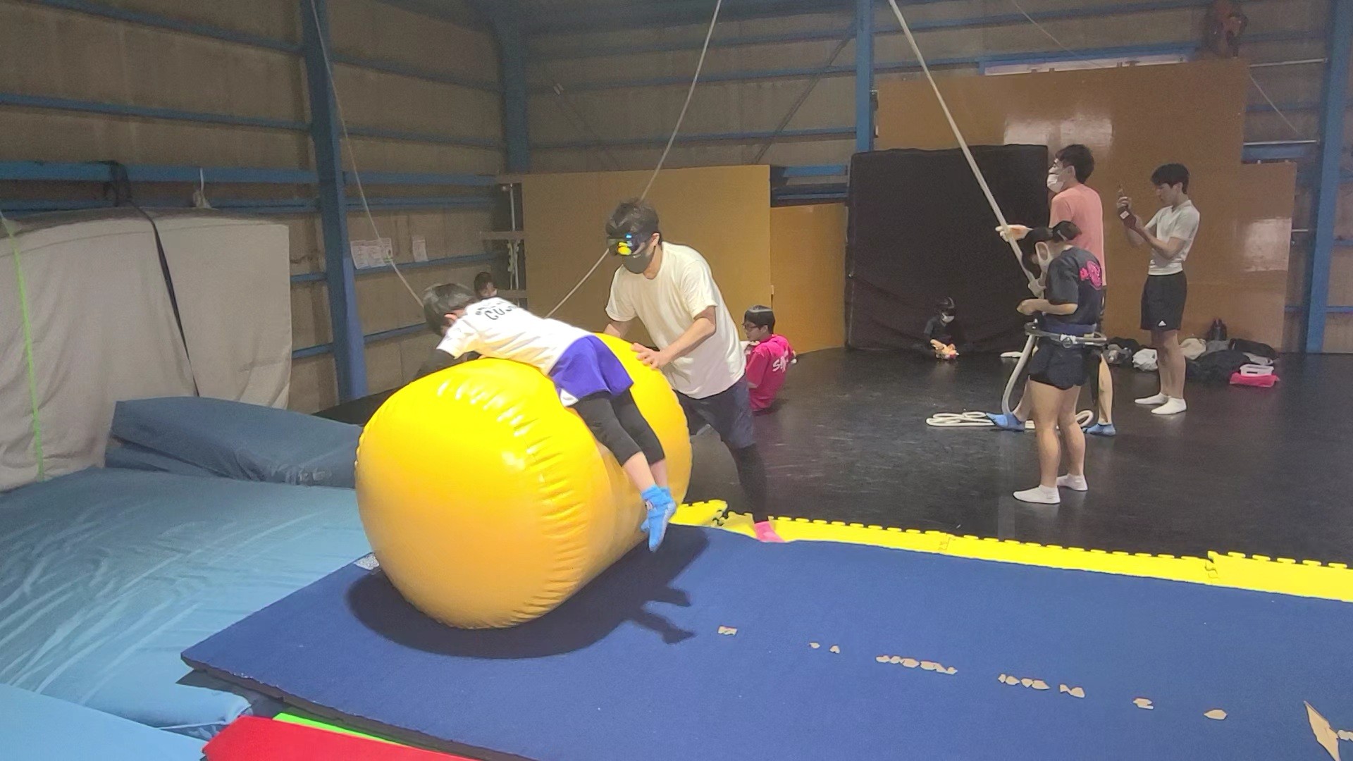 トランポリンやエアマット、様々な道具や補助器具を使用して、できることを増やしていきます。