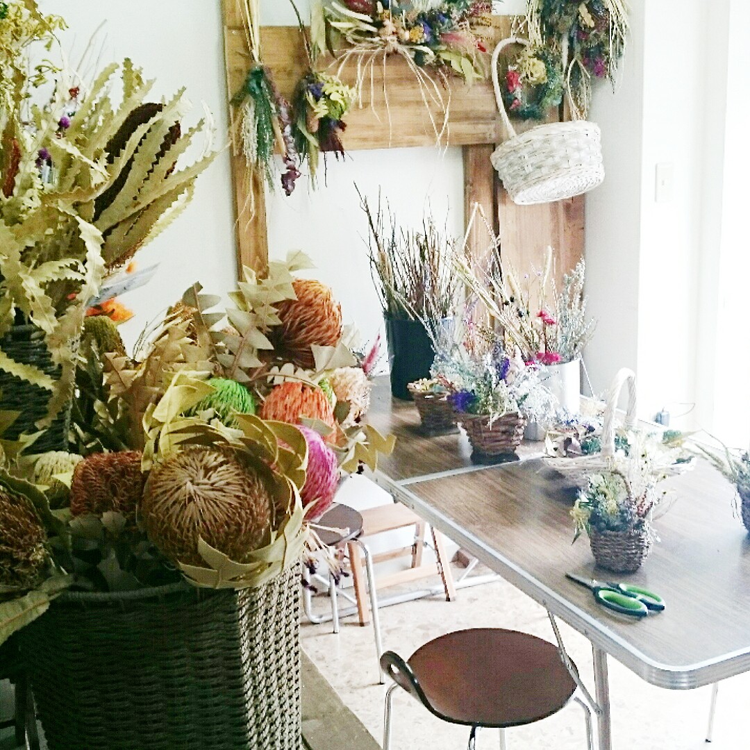 ちょっと珍しいオーストラリア産のワイルドフラワーを中心にラベンダーやすすきなどの身近なお花も揃う工房です。