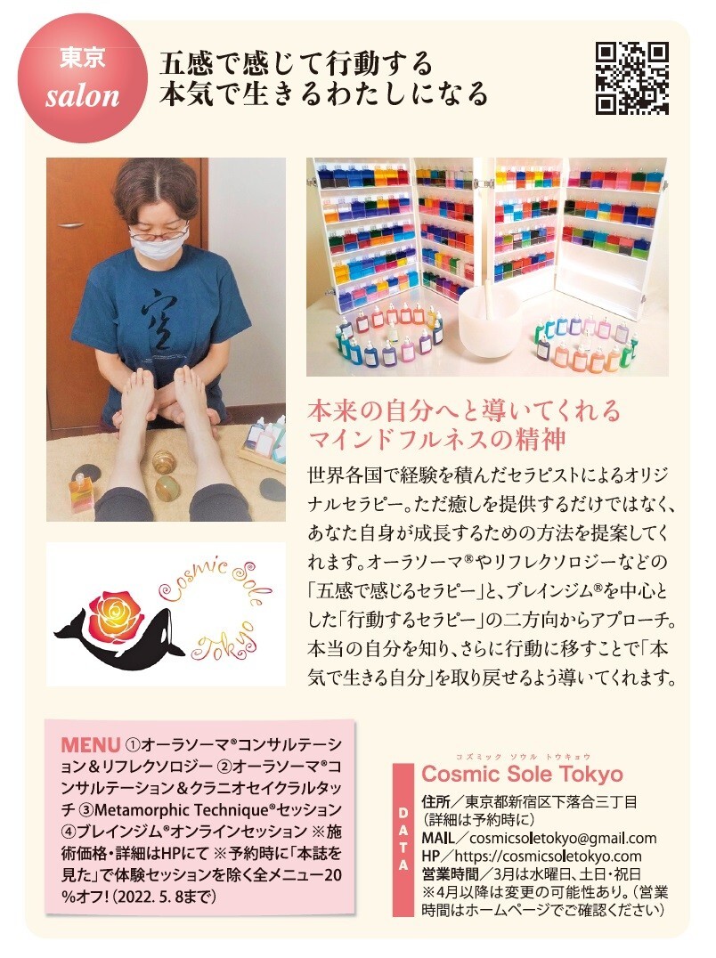 東京・目白のリトリートサロンCosmic Sole Tokyoでは、人生を変えたいと願う女性の方を対象に、脳と心とからだを整えるためのセッションを行っております。