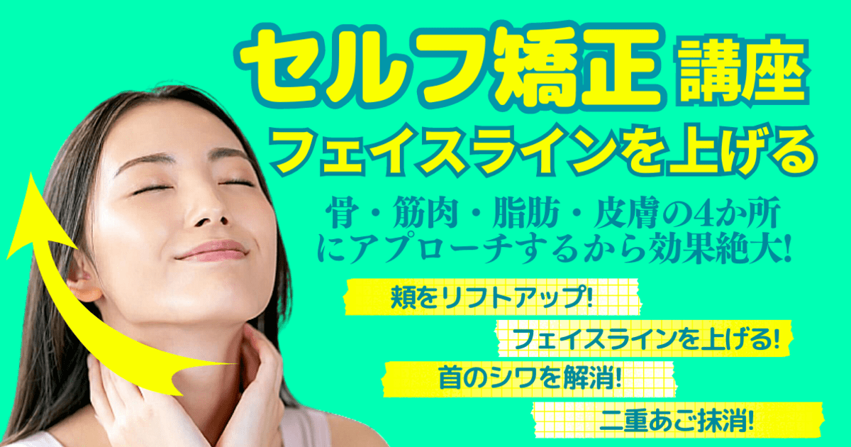 私がレクチャーしているセルフ矯正とは、骨・筋肉・脂肪・皮膚(リンパ)の4か所にアプローチする方法(技術)です。