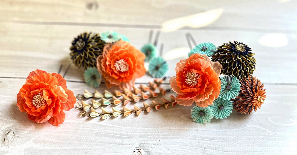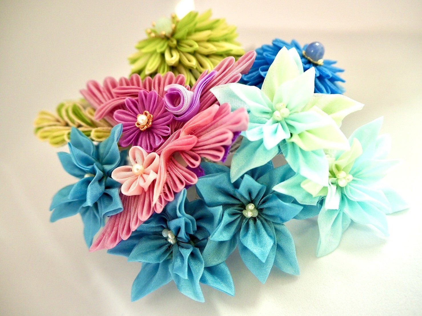 日本伝統の手工芸つまみ細工を、現代風アクセサリーから、伝統的な簪まで興味のあるものを楽しく製作します。