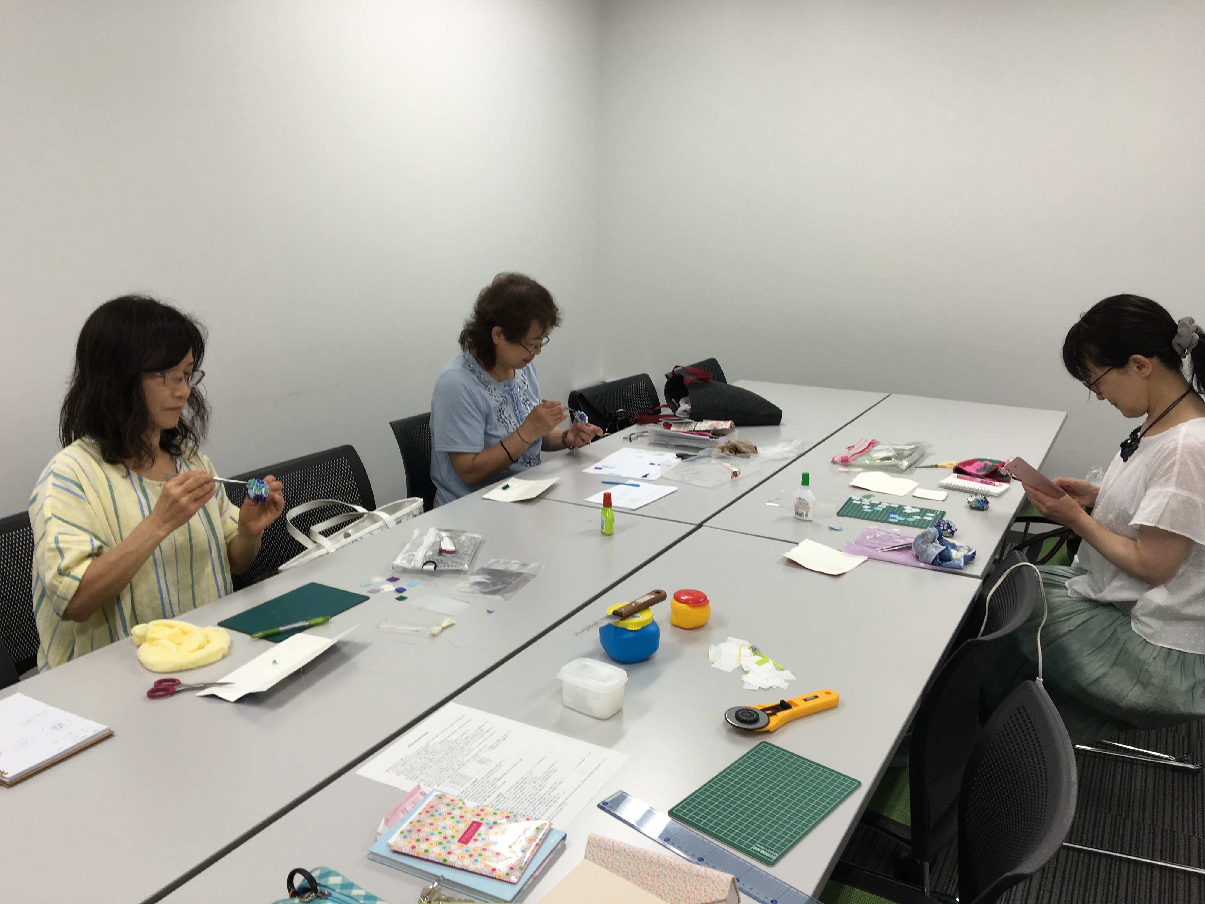 普段手芸などはしたことがないのですが、材料も用意されていて、道具も貸していただき、初心者でも作品を作ることができました。他の生徒さんたちが作っている作品も見ることができで、あんな風に作れるようになれたらいいなと思いました。