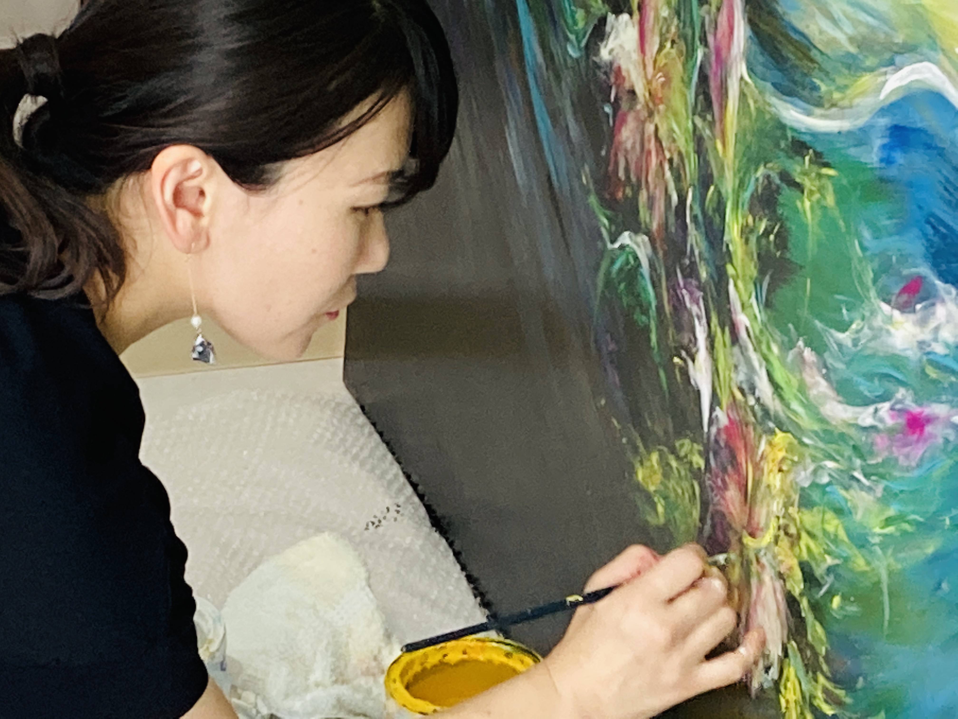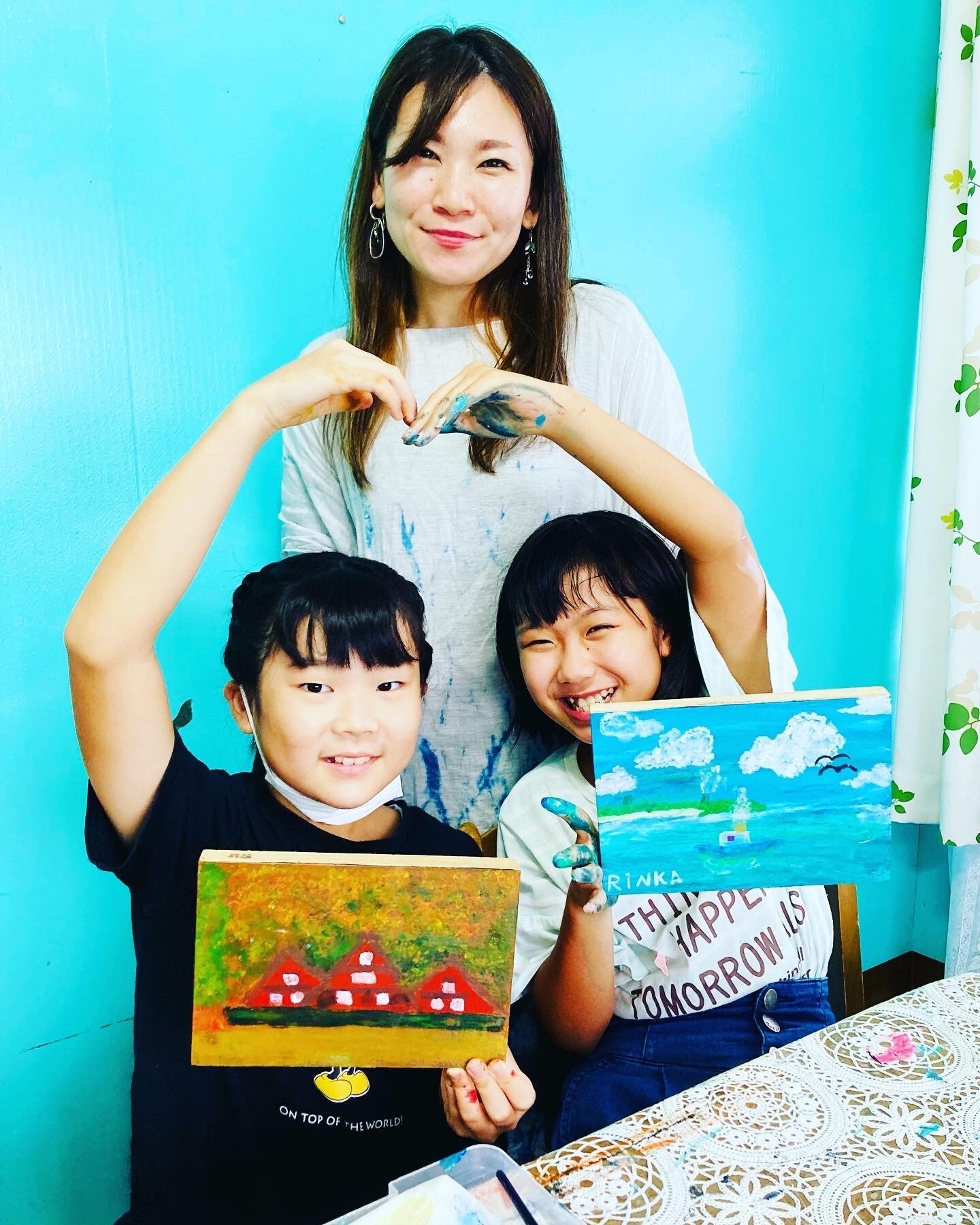 私自身、こどもの出産をきっかけにずっと夢だった画家人生をスタートしました。子育てをする上で一番手がかかるこの時期に画家業をはじめた事は、もちろん大変な事もありましたが、それ以上に豊かな精神力が鍛えられ、こども達にも私自身にも日々素晴らしい恩恵をいただいています。