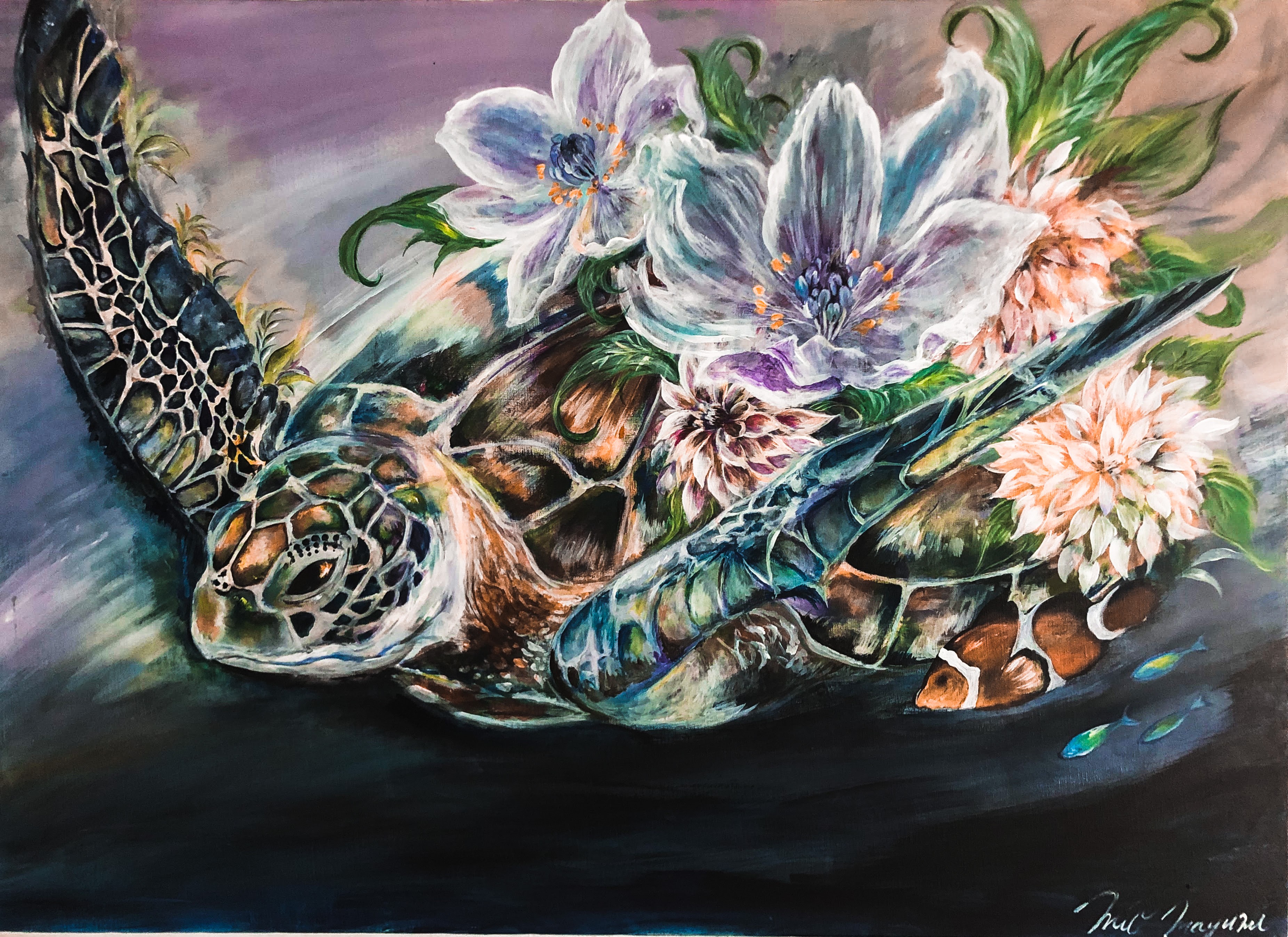 海と花をあなたの感情をのせて描いていきます。