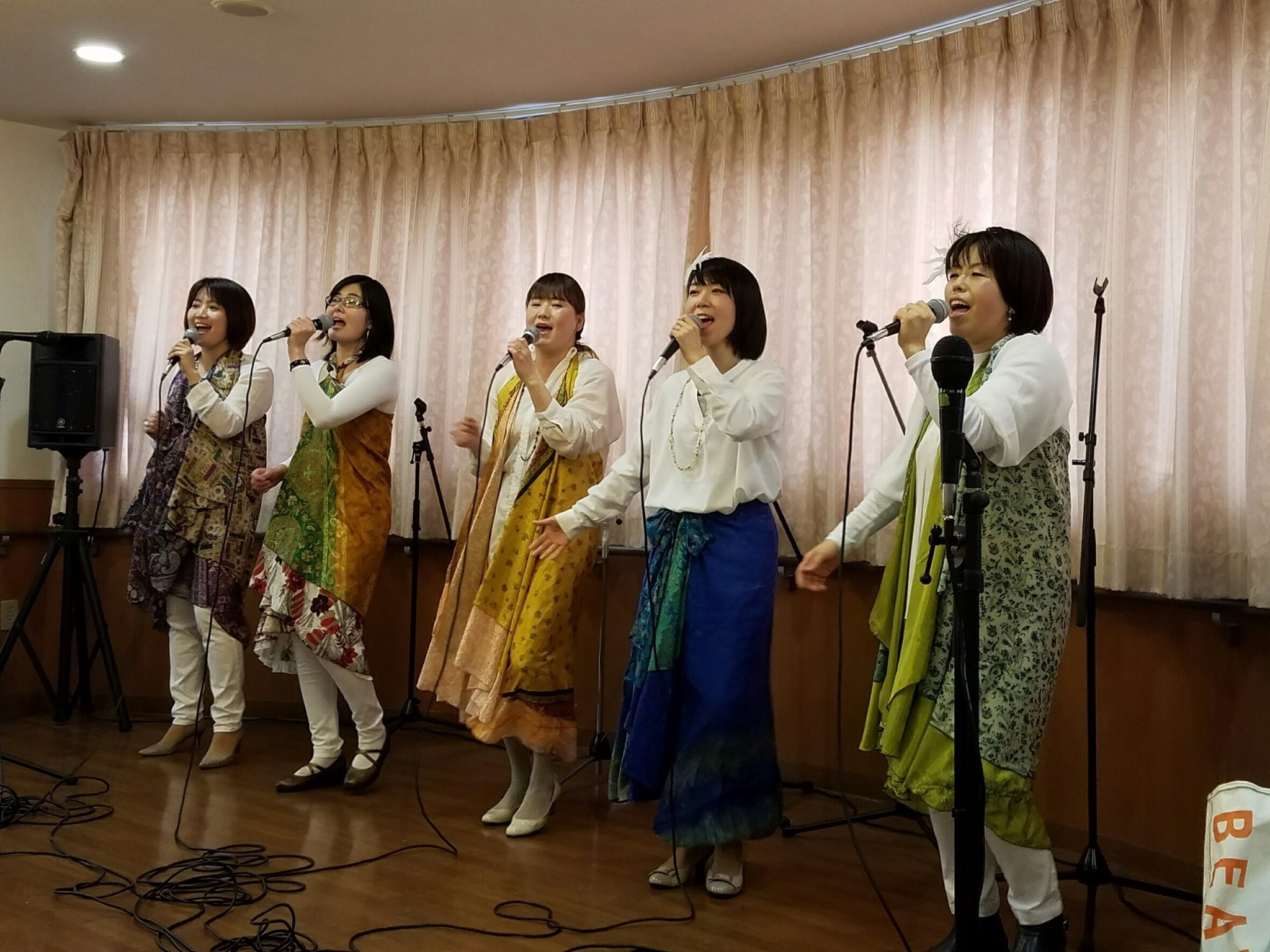 ハモることが大好きなママ達のグループで、昭和町「みなくるハウス」と芦原橋「ソルトバレー」にて月2回。