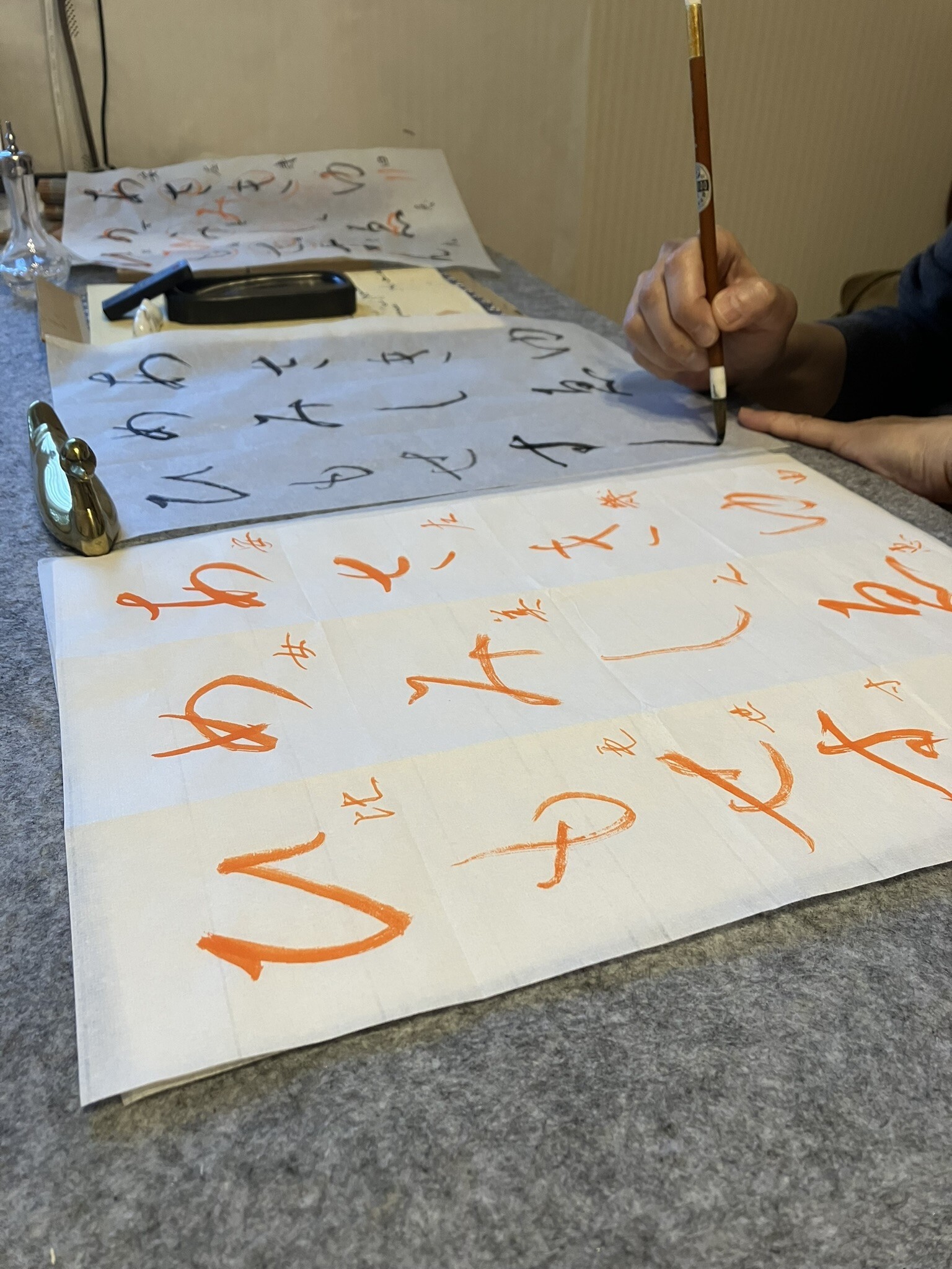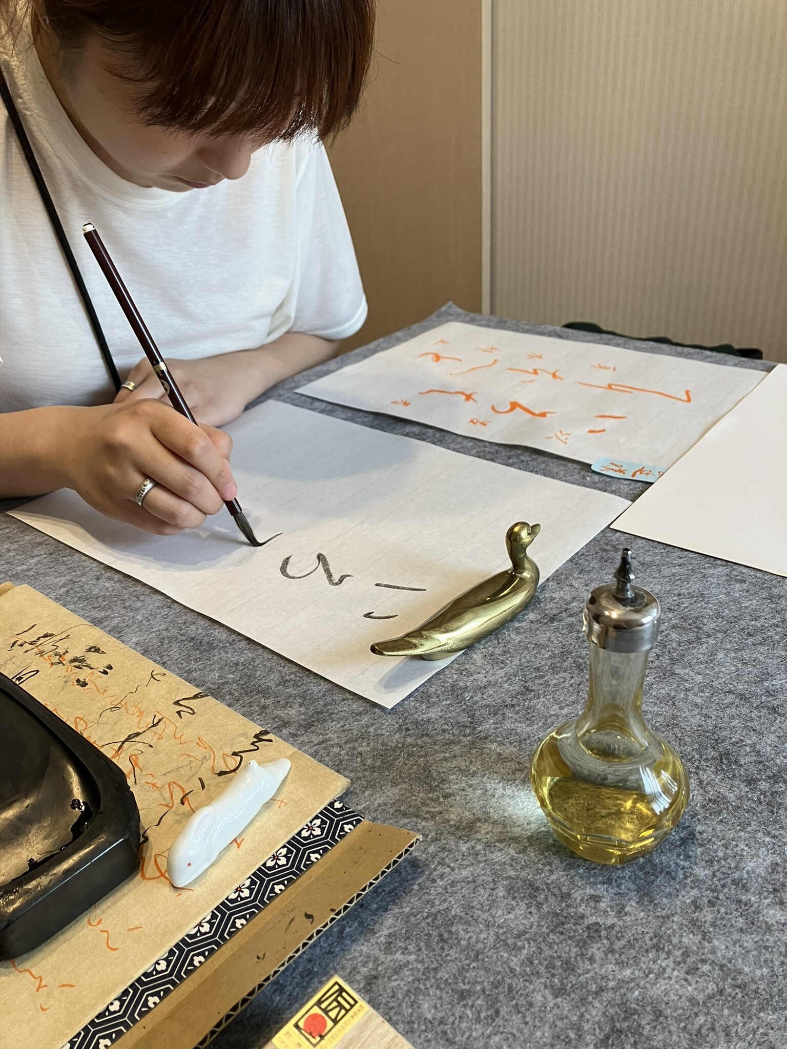ペン字は日常生活のものですが、かな書道は小筆を使った非日常、平安時代の貴族と同じ日本独自の優美な文化をぜひ味わっていただきたいです。