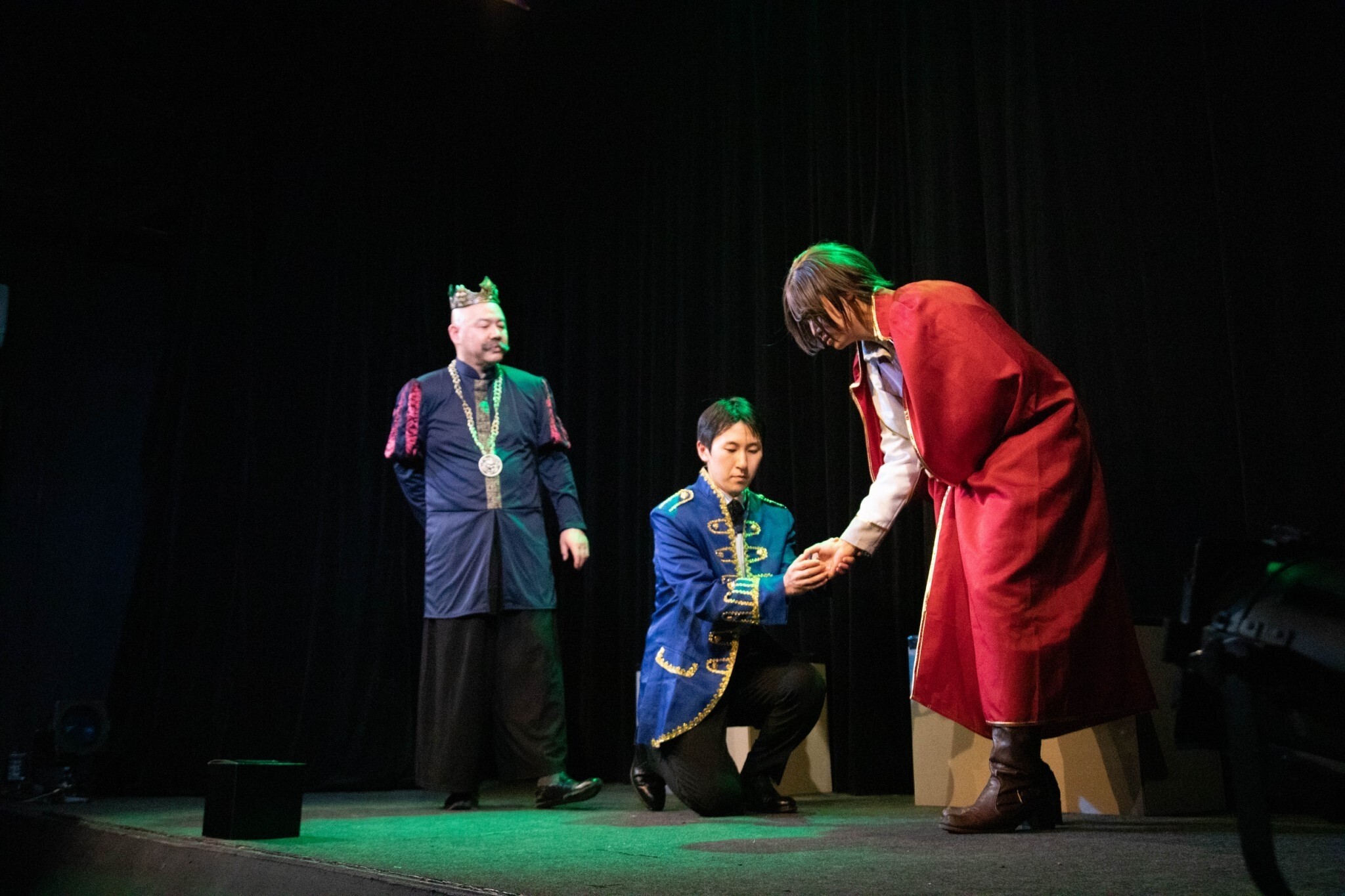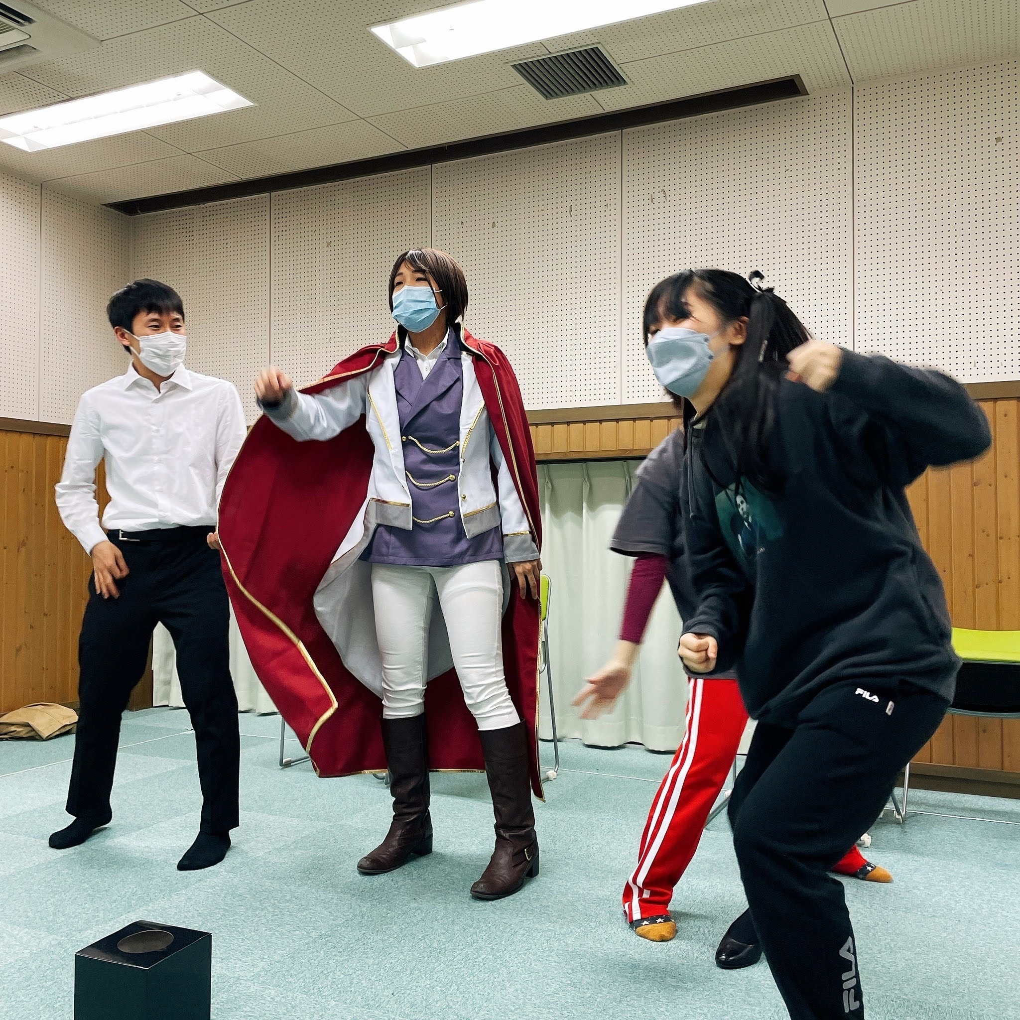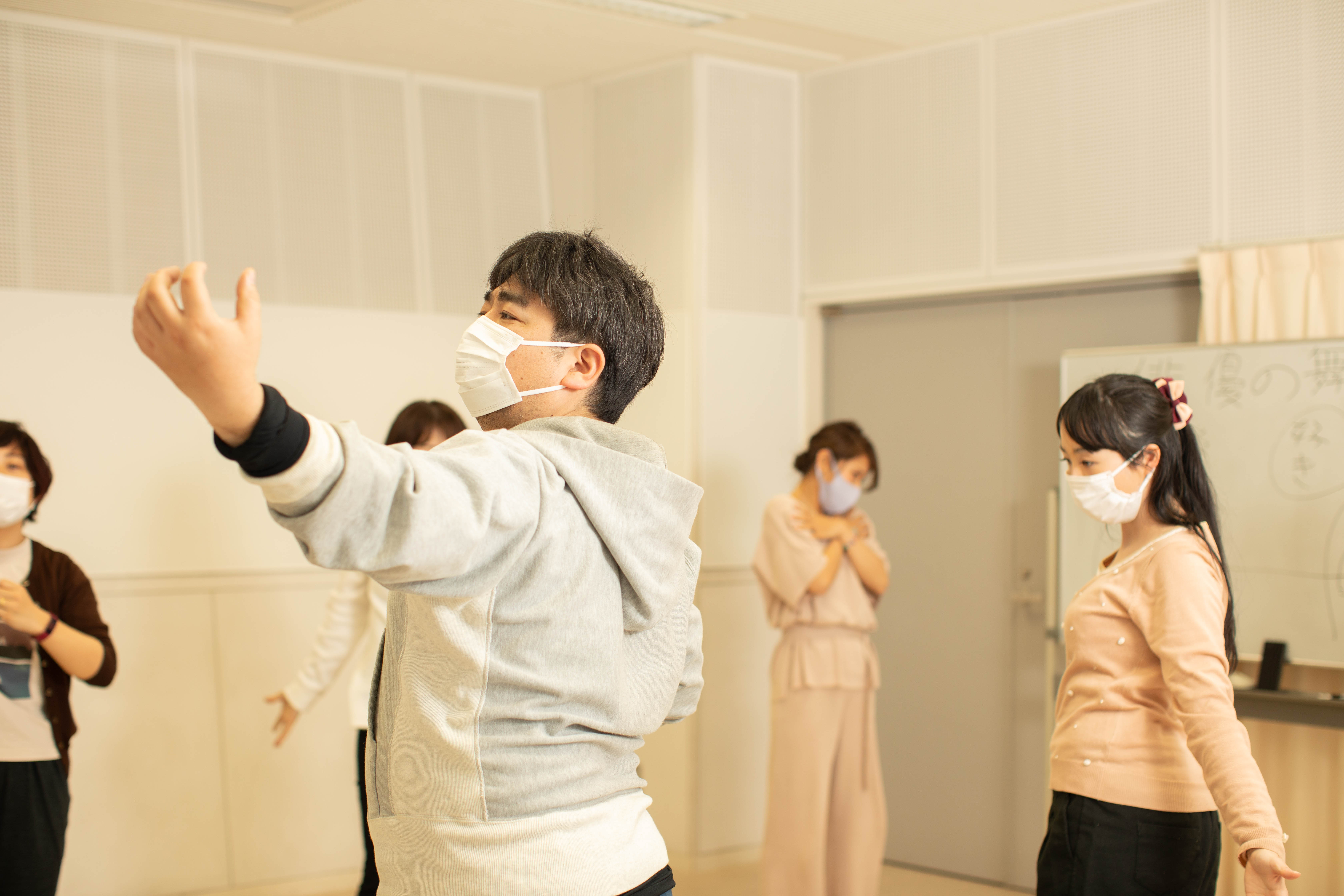 コミニケーション、舞台上で役同士、客席への演技の伝達などより具体的に体験しセリフ以外のさまざまな意味、空気感、イメージが伝わる様になるトレーニングをします。