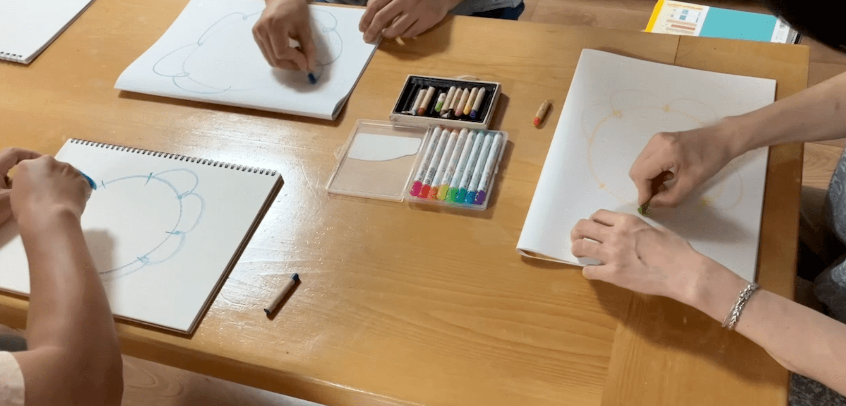 個々の体験という内的なプロセスを、描くワークがやんわり可視化するのかもしれません。