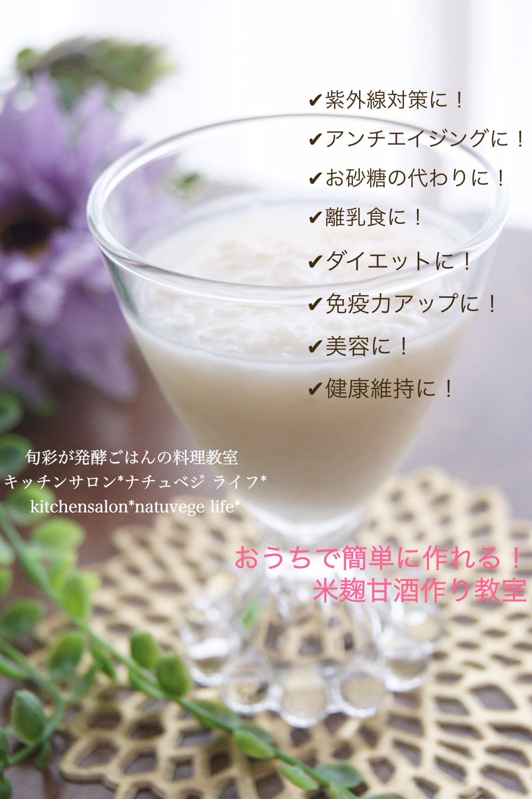 その他に米麹甘酒作り・発酵調味料教室・味噌作り教室・ぬか床教室なども開催しております。