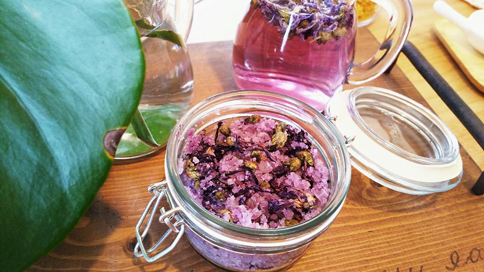 ハーブやお花を使い、好きなエッセンシャルオイルで、素敵なバスソルトを作ることが出来ました。