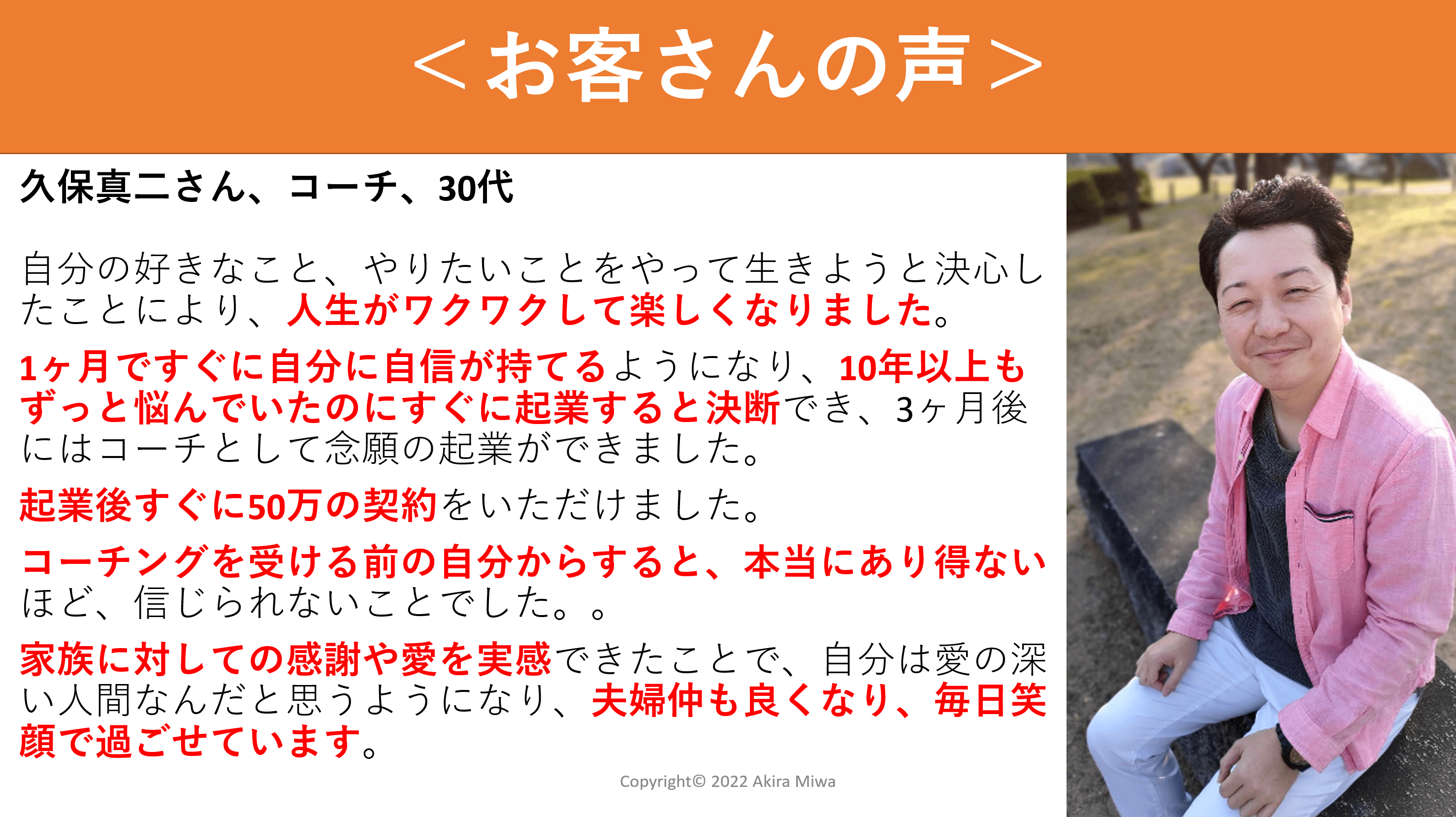 (高見 欣吾さん、男性、40代、コーチ)