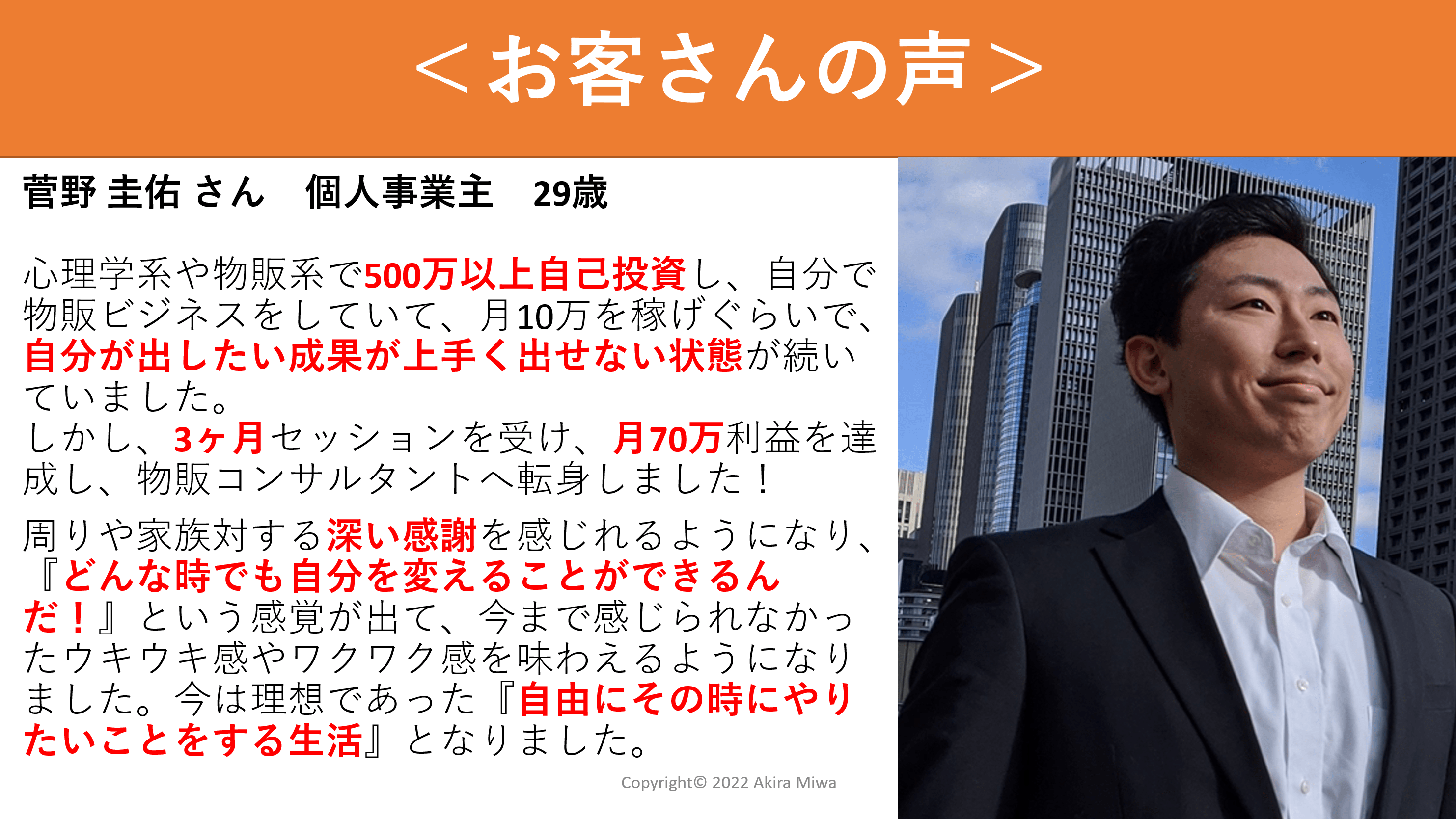 3ヶ月受けただけで、月70万利益となり、