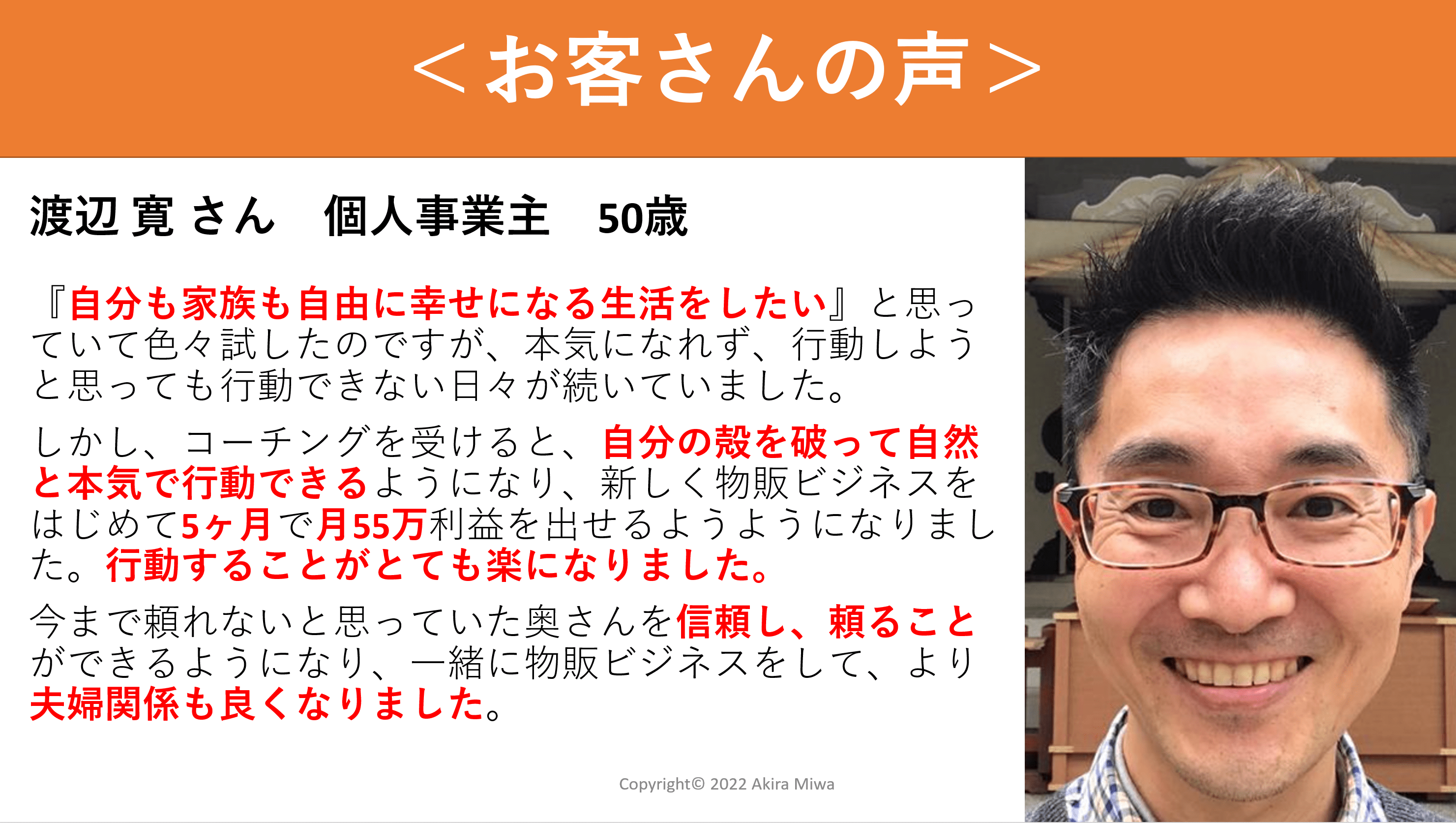 (渡辺 寛さん、50代、個人事業主)
