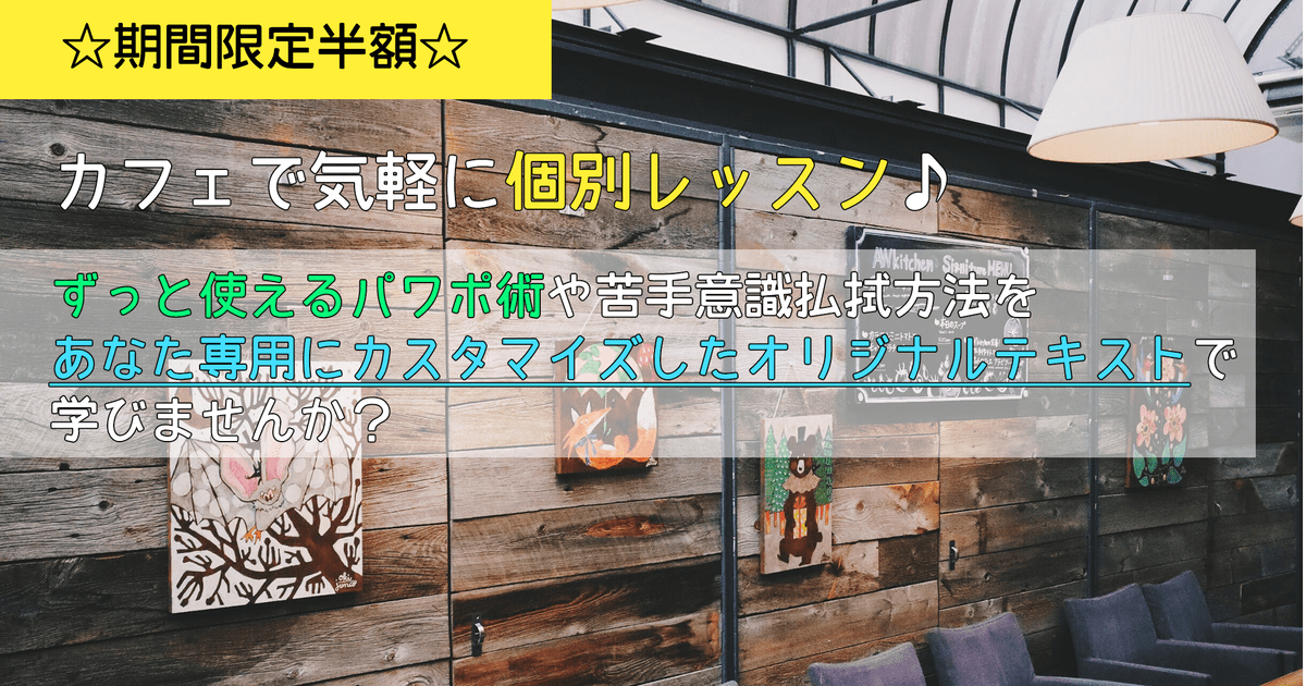 ・期間限定の半額料金に関しては、現時点での<想定>の正規レッスン費用に対しての設定額であり、今後実際の正規金額が必ずしも現在の限定価格の×2であることを約束するものではありません。