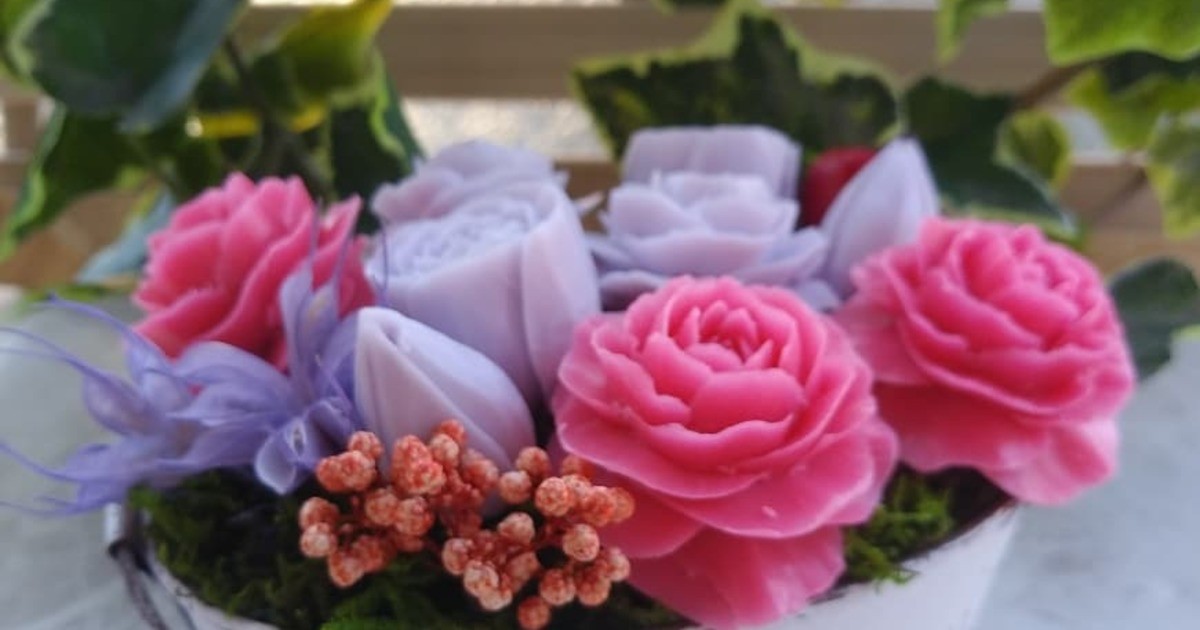 切り出しのお花も作ることができますので、ソープカービングのフラワーアレンジメントは、リビングや玄関などに飾ると、いい香りと一緒に、お部屋のインテリアとしても、お楽しみいただけます。