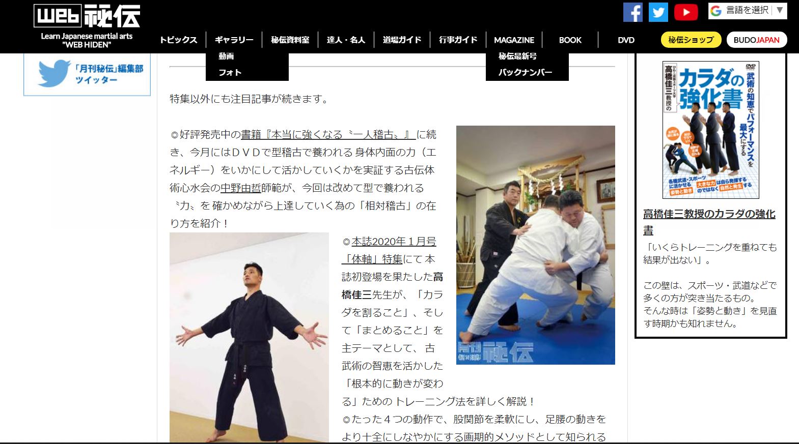 書籍「武術の根理」著者である中野先生による体験講座です。