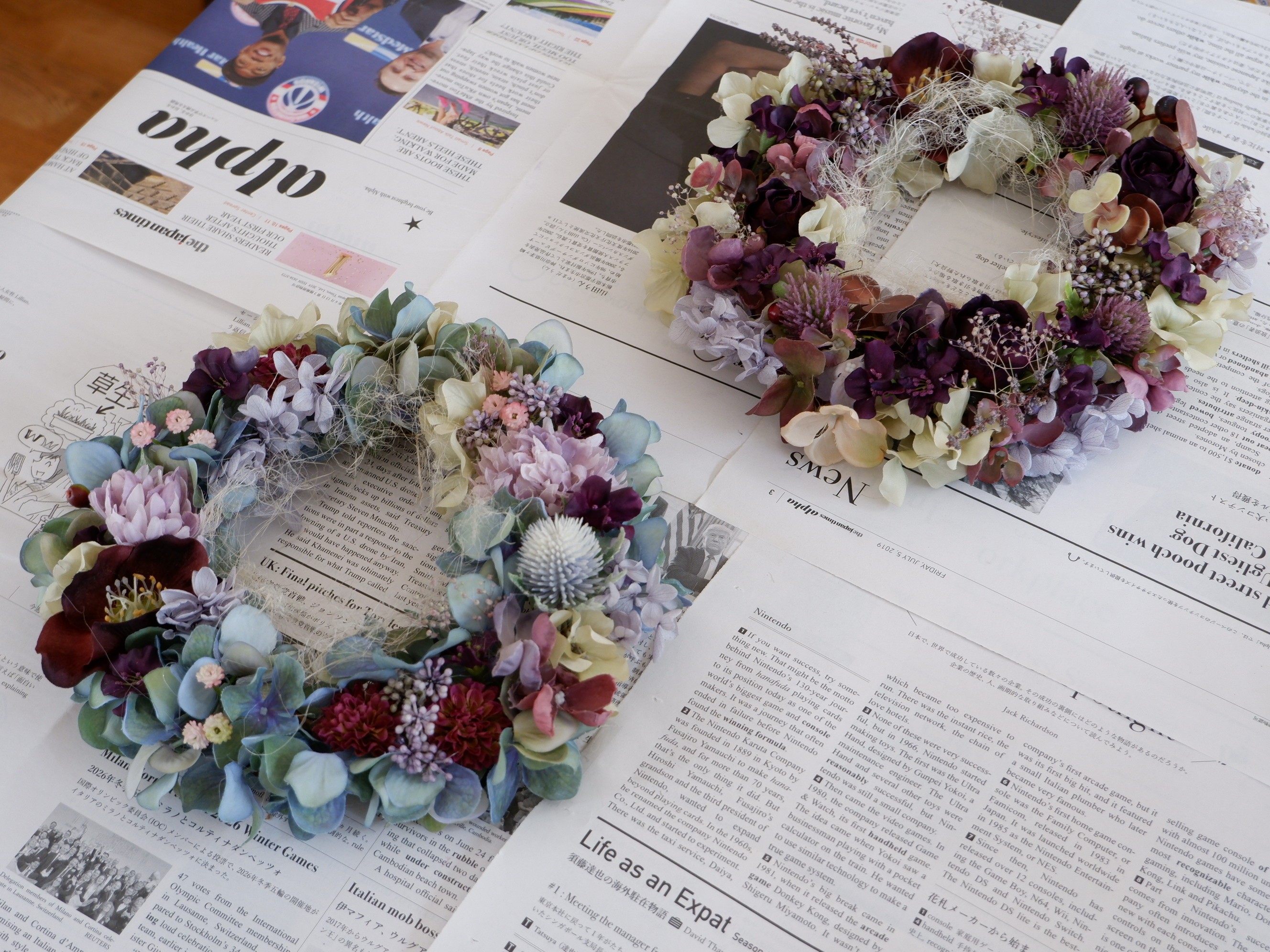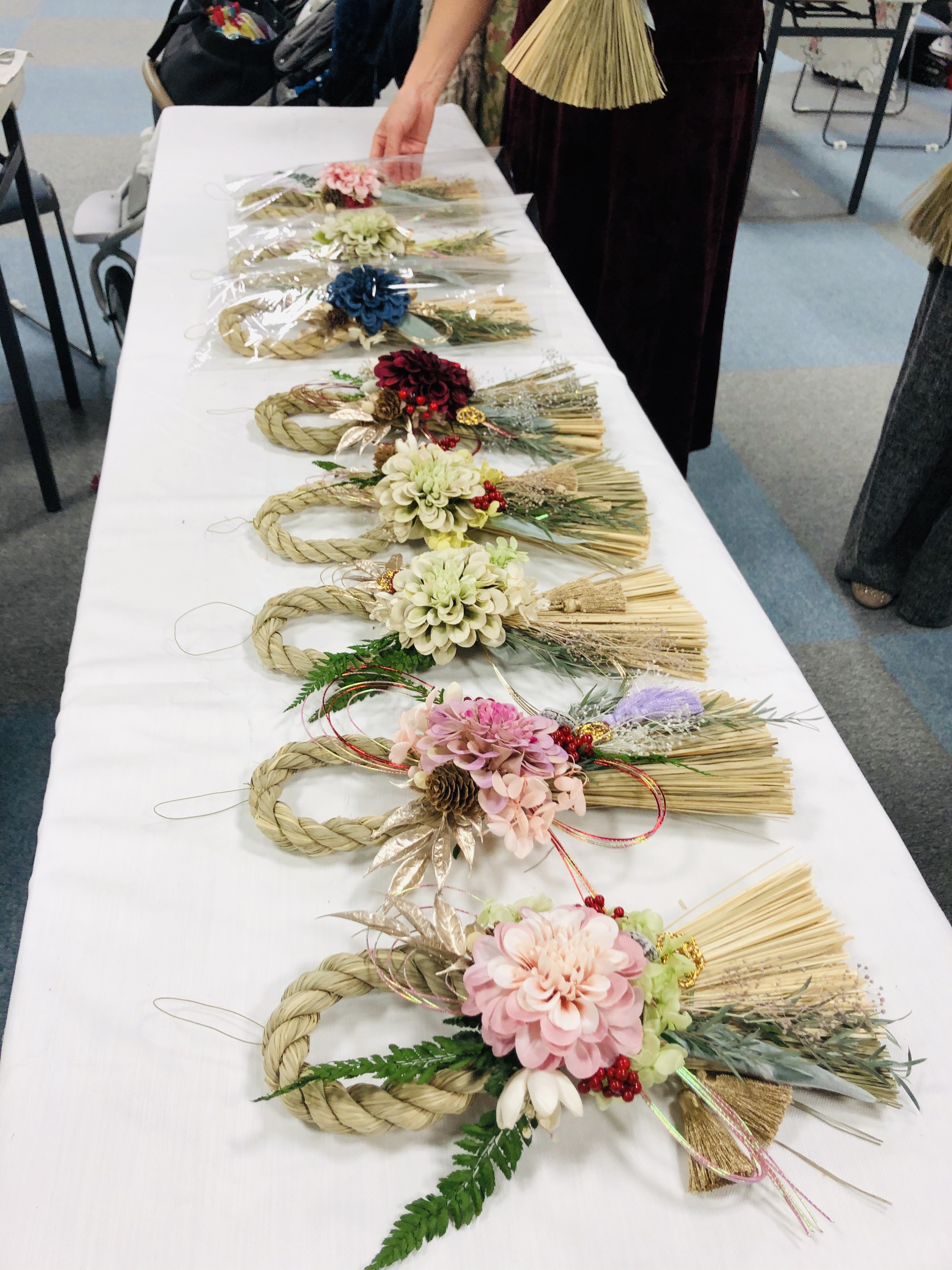 ご参加いただきまして ありがとうございました!お花に動きがあるステキなアレンジでしめ縄が完成されていました(^^)よいお年をお迎えください✨またお会いできますこと楽しみにしております♡