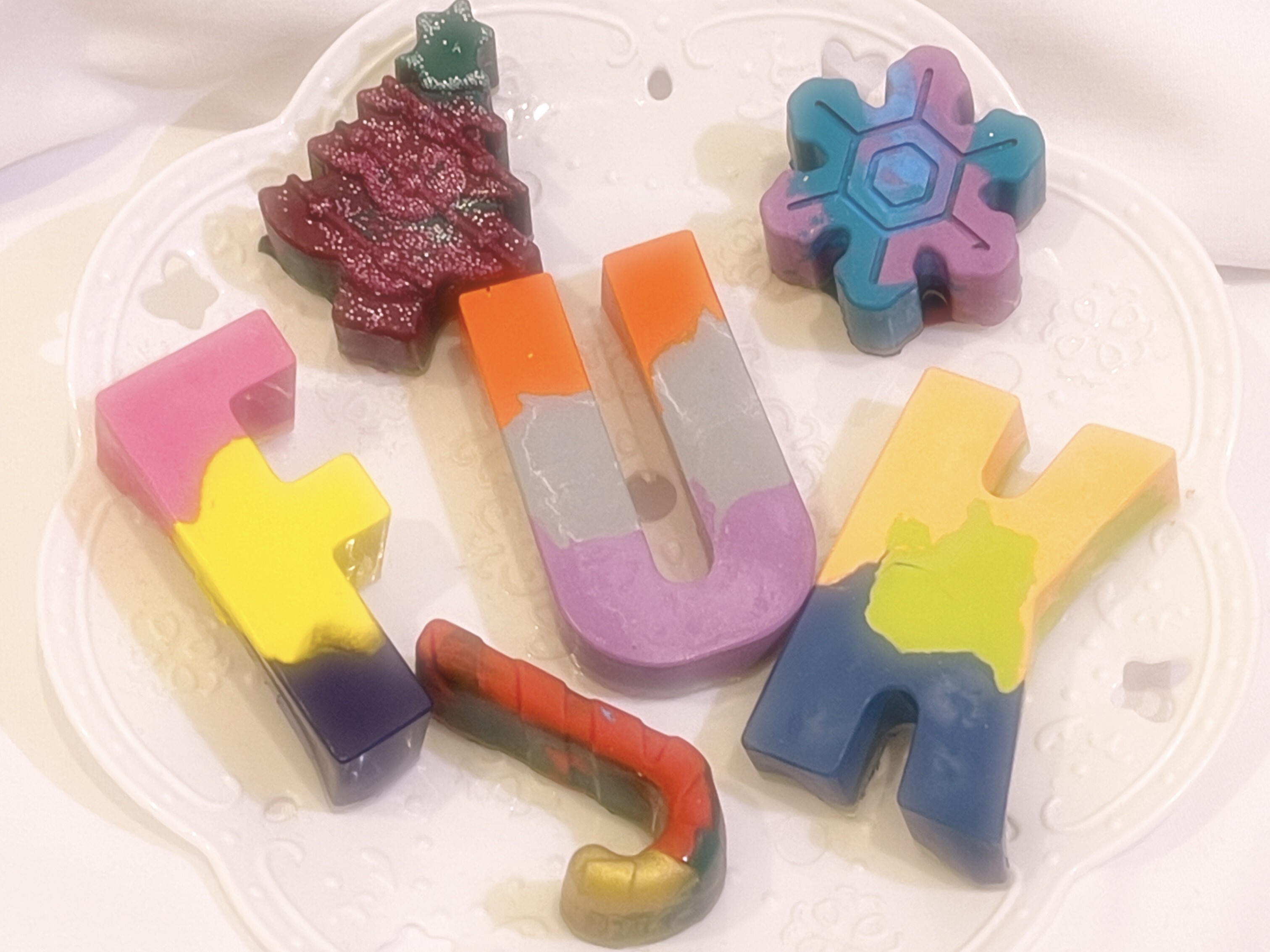 安心安全な日本製のオリジナルクレヨンを使いアルファベットなどの文字や様々な形を