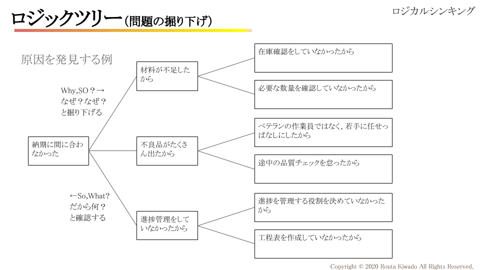 作り出したロジックツリーによって頭が整理できて、パワポや文章の枠組みが作れるのを学べたりするのも良かったです。