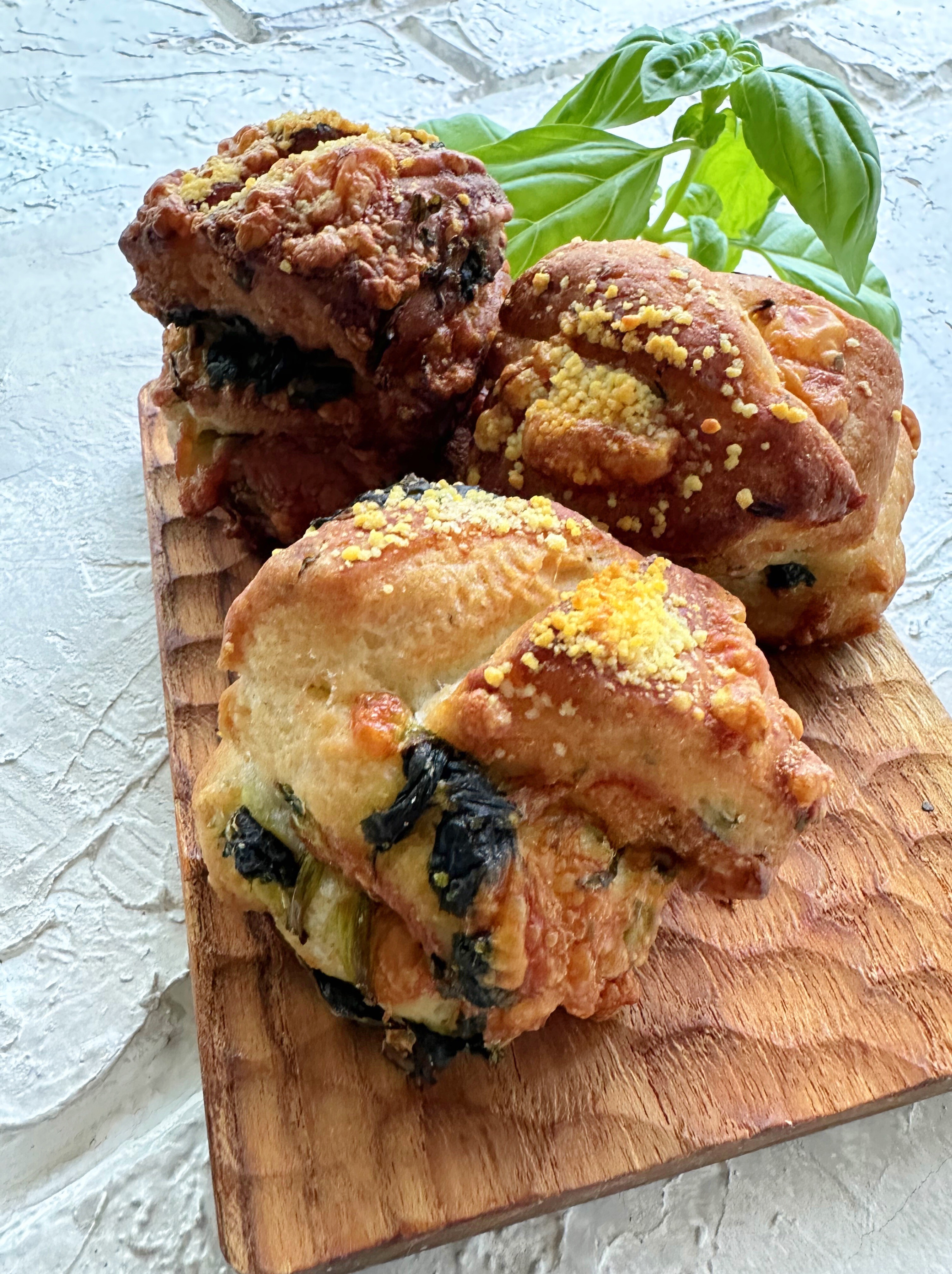 バジルオイルを生地にねりこんで、具材もたっぷりで、とっても満足感のあるブランチができました♪具材を替えたら、また違うおしゃれぱんができあがりそうで、わくわくしました!