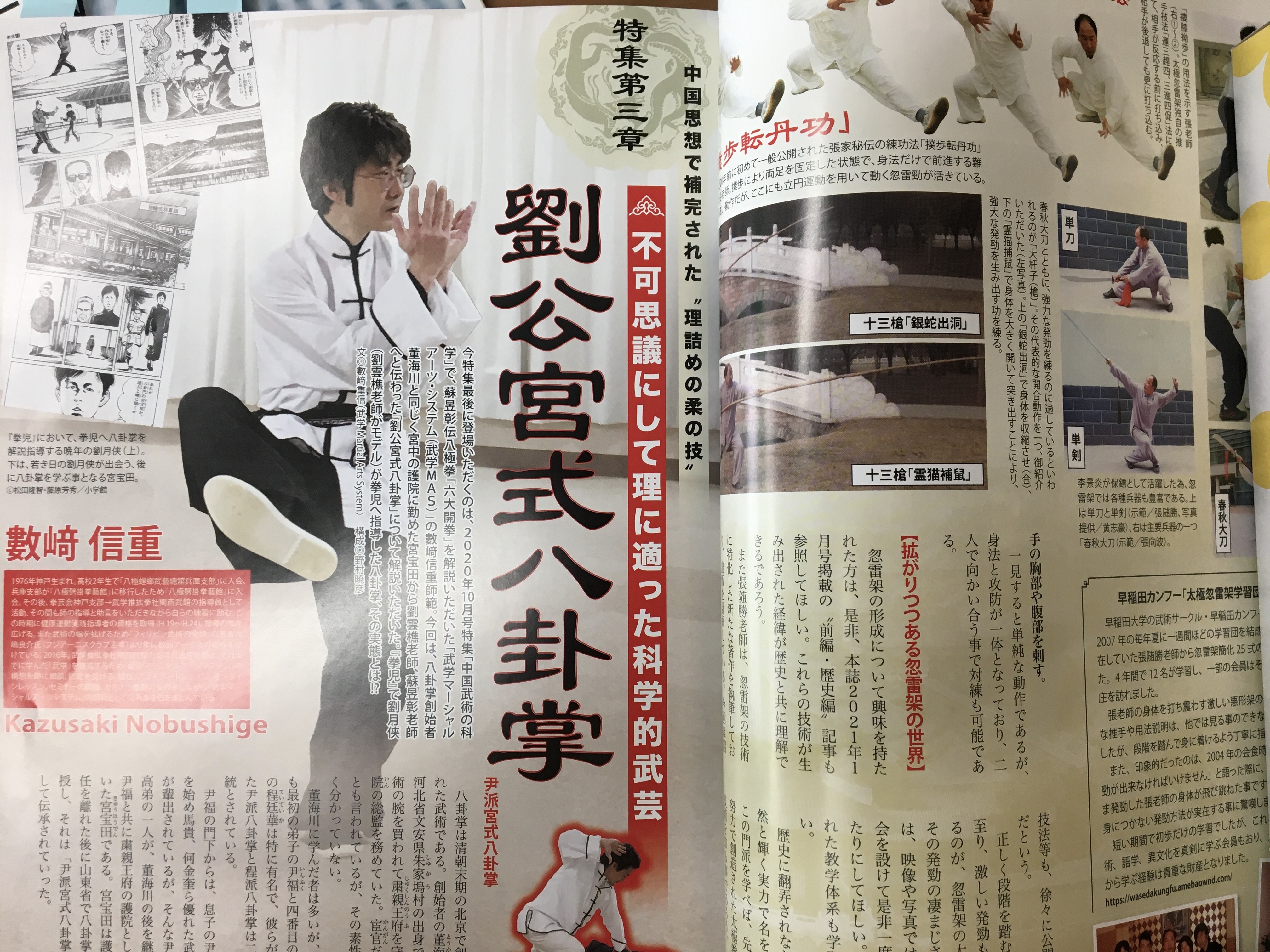 武道雑誌『月刊秘伝』においては八極拳・劈掛掌・八卦掌・太極拳などの伝統系のカンフーのメソッドを公開しています。
